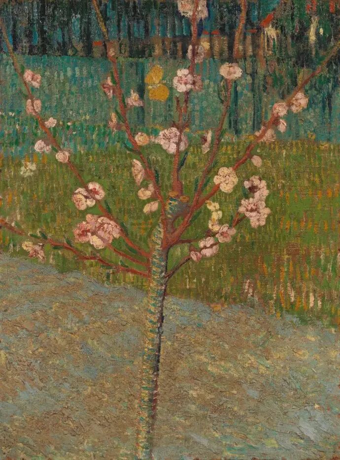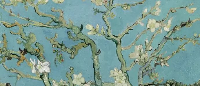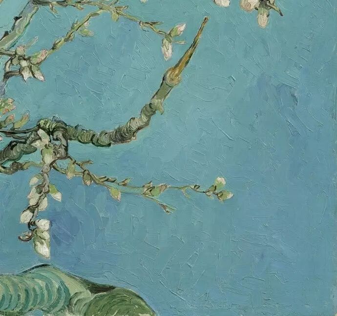 那次我进去后,先匆匆把梵高所有的画看了一遍,从他画的鞋子,一直到展厅里他最后的一张画——《盛开的杏花》——(Almond