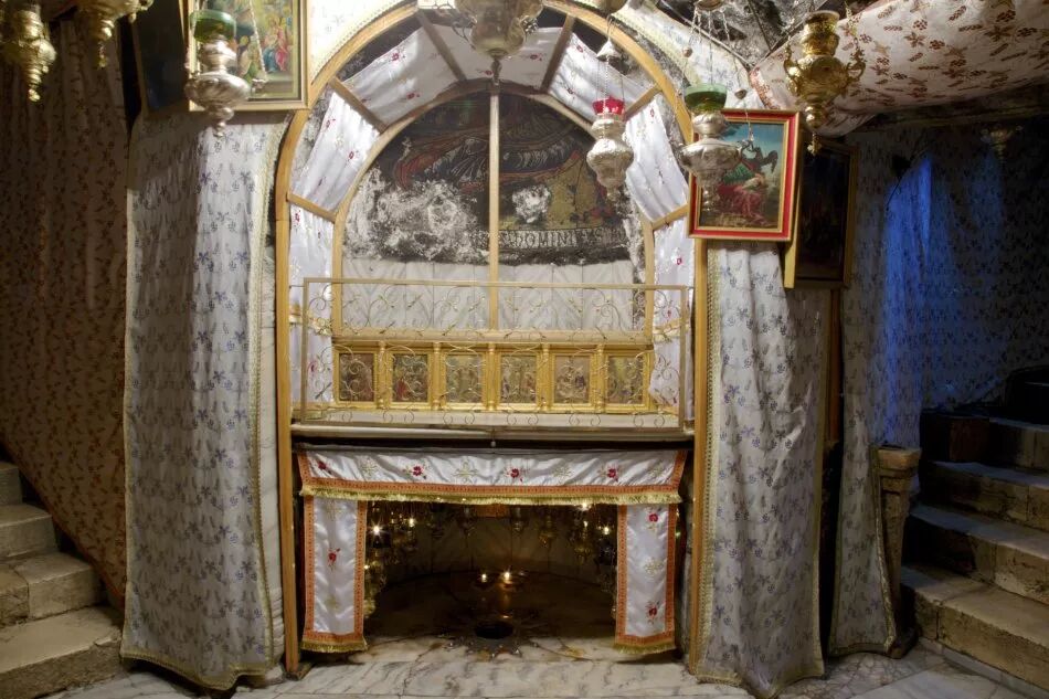 在伯利恒之星的上方,悬挂着十五盏油灯,分别属于基督教不同的宗派,它们在一天的不同时间点燃,昼夜不灭地映照着这块圣地。 主啊,请在我心中点燃一盏灯,永远照耀着你。不,主,你是光,你就是那盏灯,愿你的神圣之光永远照耀着我,直到我亲眼看到你,奉耶稣的圣名祷告,阿门。 2015.4.16—17