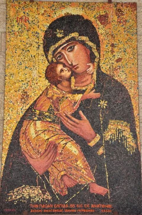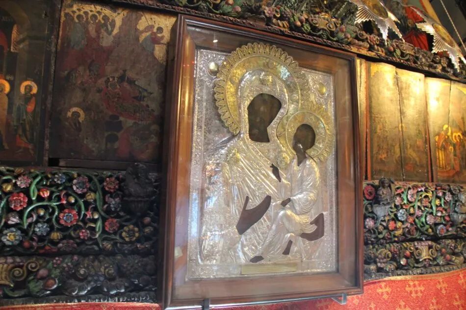 在等候进圣诞石窟的过程中,我看了一下前方和右手边的几张圣像画,大都画的是圣母与圣子,看出来了,这是东正教的圣像,圣母的表情宁静,肃穆,圣子充满了纯洁。