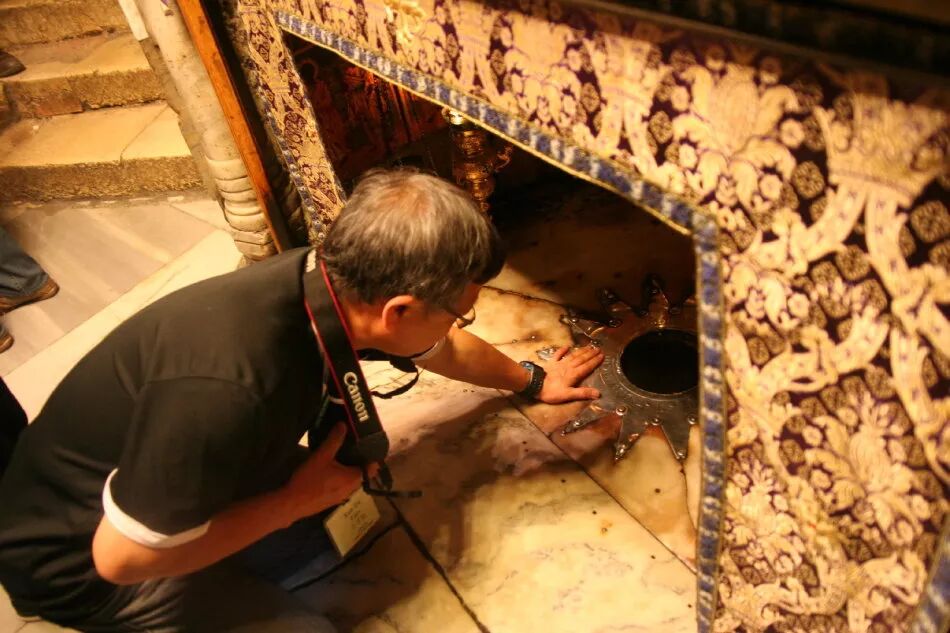我不知自己怎么走完了最后的那几步,当我看到了地面上那颗闪闪发亮的银星,我不由自主地跪下了,这就是我主耶稣诞生的地方,我的主,我的神啊,你就诞生在这里。