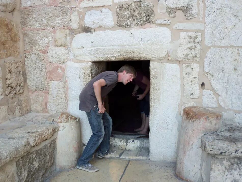 这个门之所以这么小是有典故的,说是当年十字军为了阻止阿拉伯骑兵侵入教堂内蹂躏,不得已,将原来高大的拱门用大石头堵起来,只留下这么一个小门。如今,它提醒来到这里的每一个朝圣者,在万王之王的面前,你要谦卑。 今早再次回忆通过“谦卑之门”的情景,突然想到,其实是主耶稣自己谦卑地来到人间。就像保罗说的:“他本有神的形象,与上帝同等,却不认为这同等要抓住不放,反而倒空自己,取了奴仆的形象,成为人的模样”(腓2:6—7 新汉语译本)是的,主啊,是你降卑自己,降到最低处,成为最卑微的人,出生的时候,连个人的住处也没有。主啊,让我效法你,成为一个虚心的人,天父的儿女。