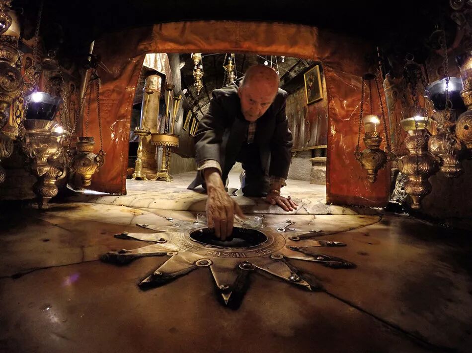 教堂内的马赛克地板保存到了今天,从圣诞教堂完工的333年算起,它被安置在这里,已经有将近一千七百年的历史了。但现在看起来还是那么精美。而专家则说,这个图案中有十字架,并且是用十字架这个代表基督教信仰的最早表述之一。不过,我没有细看,我着急去看我的主耶稣基督诞生的山洞。 我疾步向这个东正教教堂的后方走去,圣诞石窟(Grottoof the Nativity,也有的翻译成圣诞山洞)就在那里。我看到那个小门洞了,一群人正排队站在那里,我不自觉地放慢了脚步。近了,耶稣诞生的地方就在这里。 此时,我不能不想起《路加福音》写的话,约瑟和马利亚在伯利恒的时候,“马利亚的产期到了,就生了头胎的儿子,用布包起来,放在马槽里,因为客店里没有地方。”(路2:6—7)当年,马利亚就在这里走过,就在这里歇息,那时,没有地板,也没有现在漂亮的石阶,那是什么样的山路,什么样的客店?我想象不出来,但我知道,这个世界没有耶稣的地方。这个世界还在反对庆祝圣诞。 ![]()