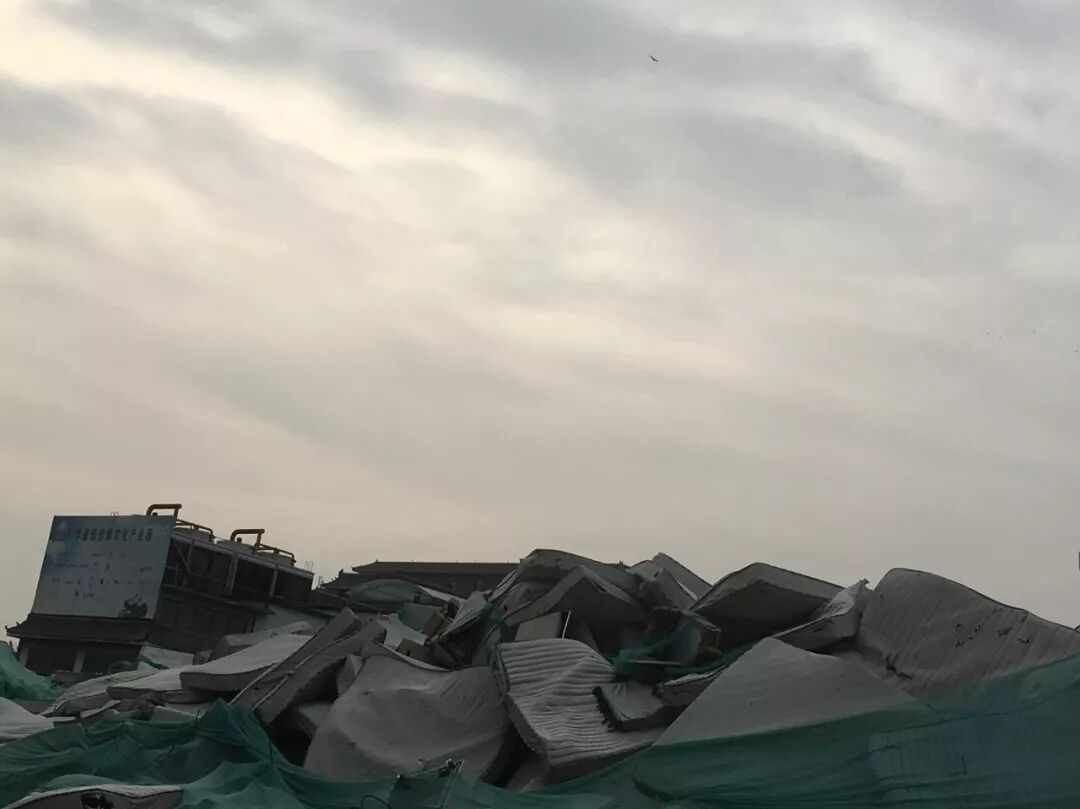 街道挺干净的,道边的房子挺老,过去这里是村子。没往小胡同里进。一道围墙后面,一大堆拆毁的建筑材料,还有一些床垫。