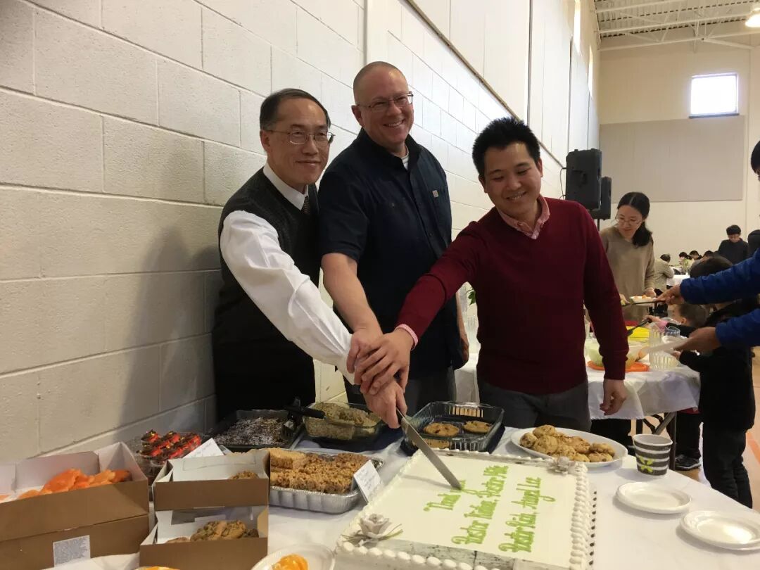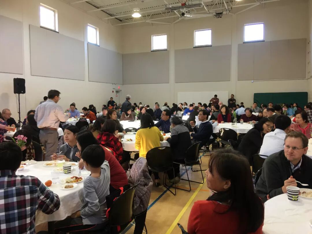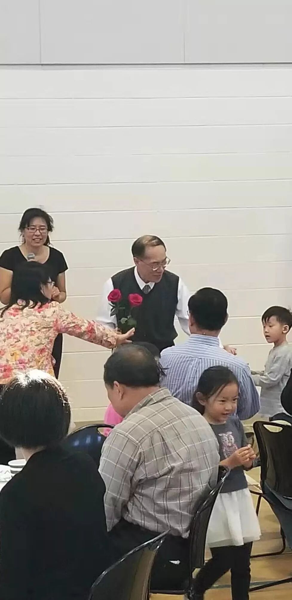 昨天主日学结束后,也是传统,我们教会中英文两堂的兄弟姐妹共进午餐,在吃饭期间举行一个小小的感谢牧师的仪式。