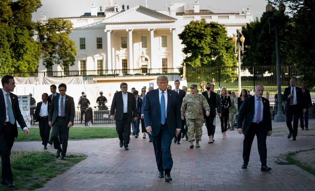 记者会后川普立即带着圣经开走,走了不到两百米,走到白宫前的圣约翰教堂,拍照。国防部长埃斯珀和参谋长米利参与了全程的拍照活动,这引起了轩然大波。 难道美国军方支持川普动用军队? 马克·米利上将是现任美军参谋长联席会议主席,6月2日深夜他突然出现在华盛顿街头,并且只说了一句话:“我们尊重自由表达的权利,华盛顿国民警卫队已出动,我来看看情况……”