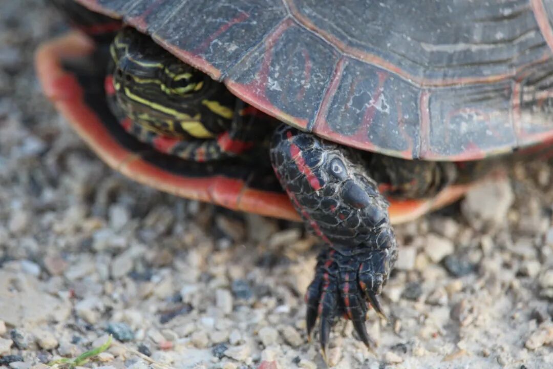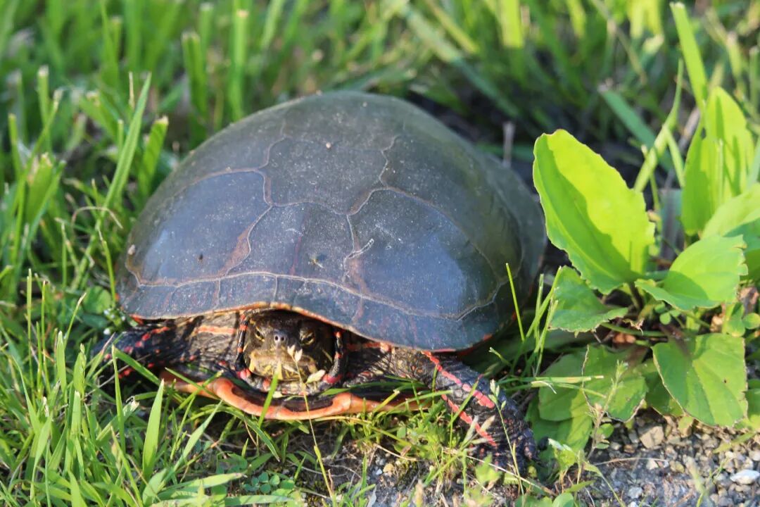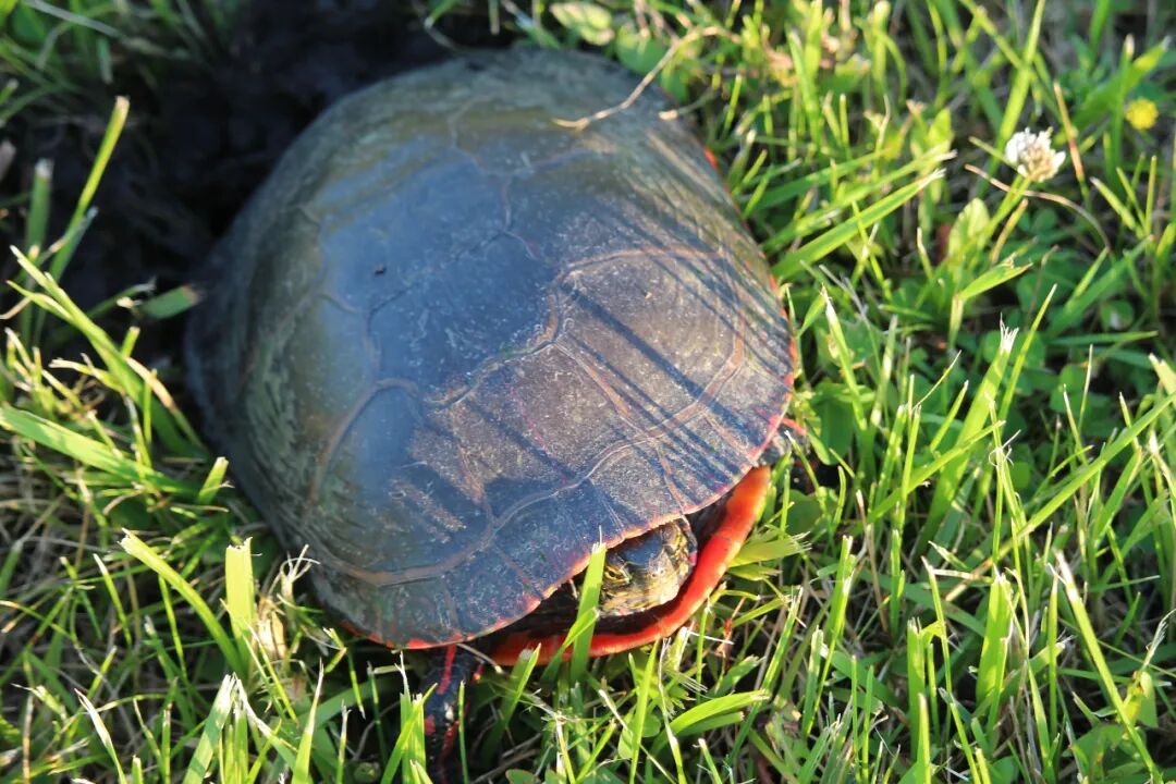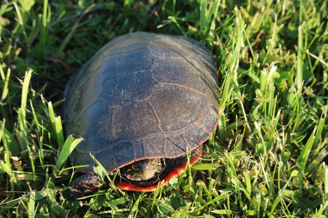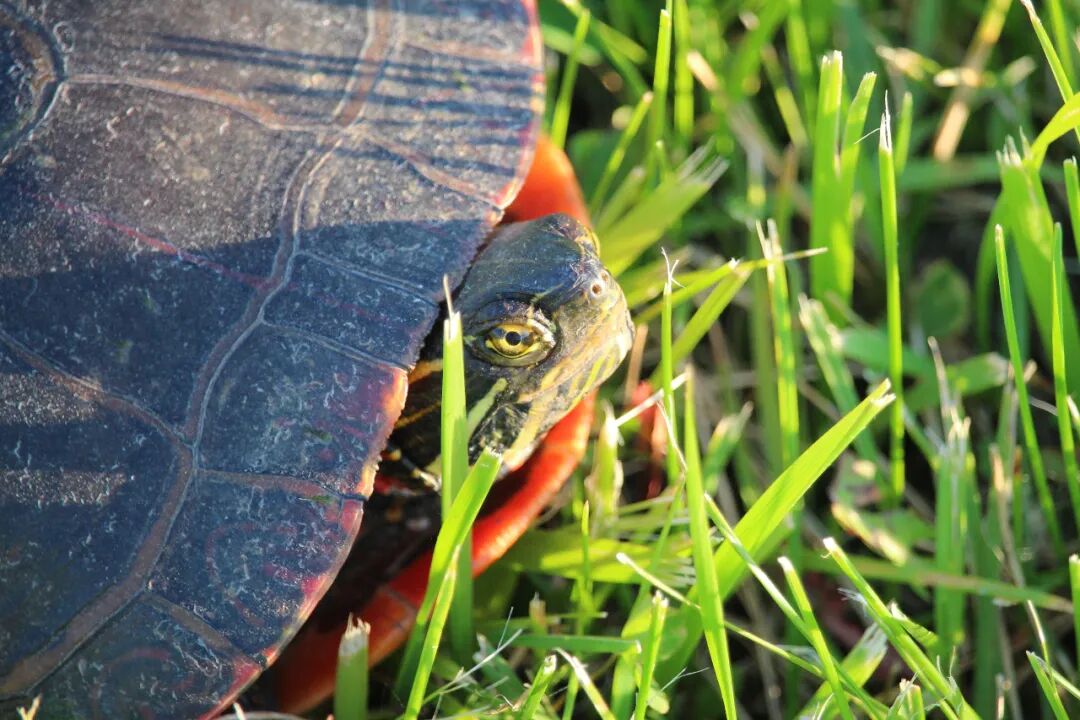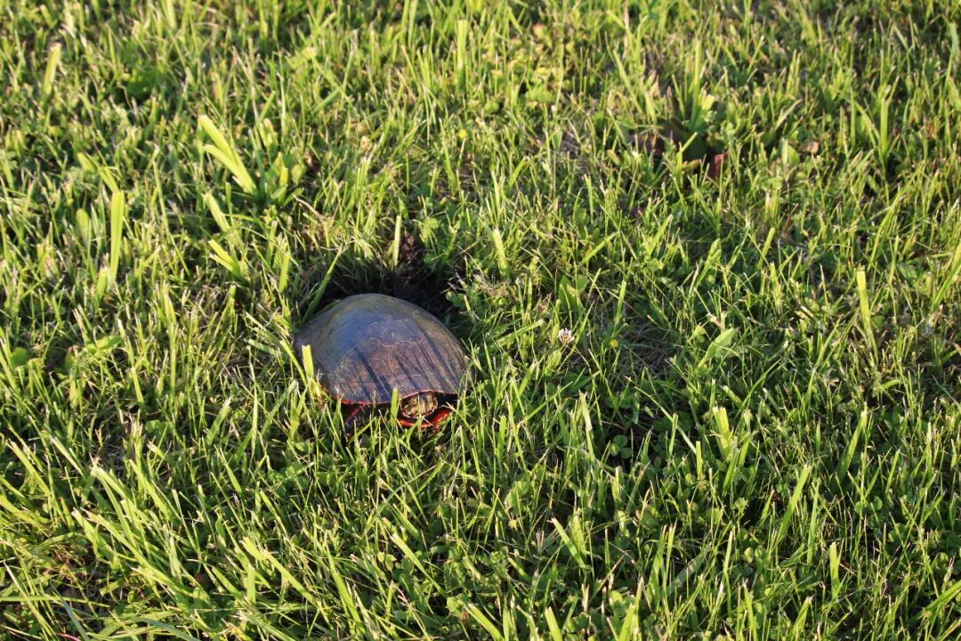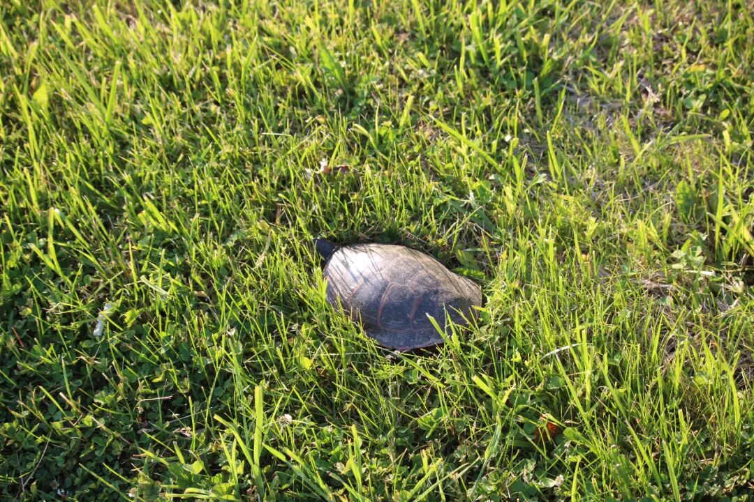 接下来两三天里,先后看到了五只小乌龟,我都困惑了,今年怎么突然出现了这么多乌龟?也没有专家出来解释一下。算了,还是蹲下来看一会儿小家伙吧。 天哪,它前面这只腿太粗壮了,太色彩斑斓了,这让我马上联想到了中国古代的武士,身披着盔甲高呼:“出征!出征!出征!”但脚基本原地运动。 龟步。 也似乎明白了那些古代的大石碑,硬是让龟扛着,感情是这龟步有力,并且,不动。 曹操关于“龟”说什么来了:“老骥伏枥,志在千里,烈士暮年,壮心不已。” 改成“老蹩伏地,驮尔万年”如何? 会有版权纠纷吗? 2020.6.10 于芝加哥