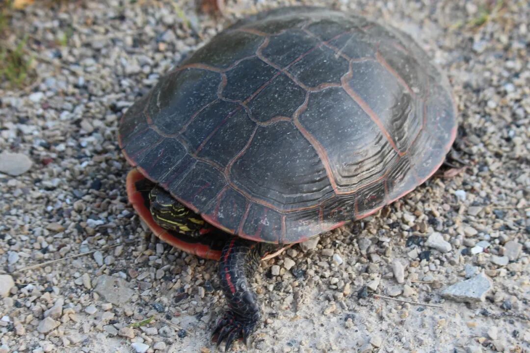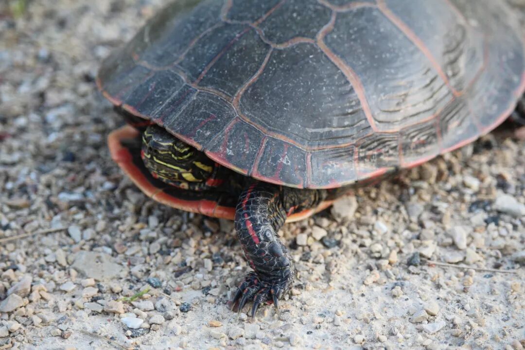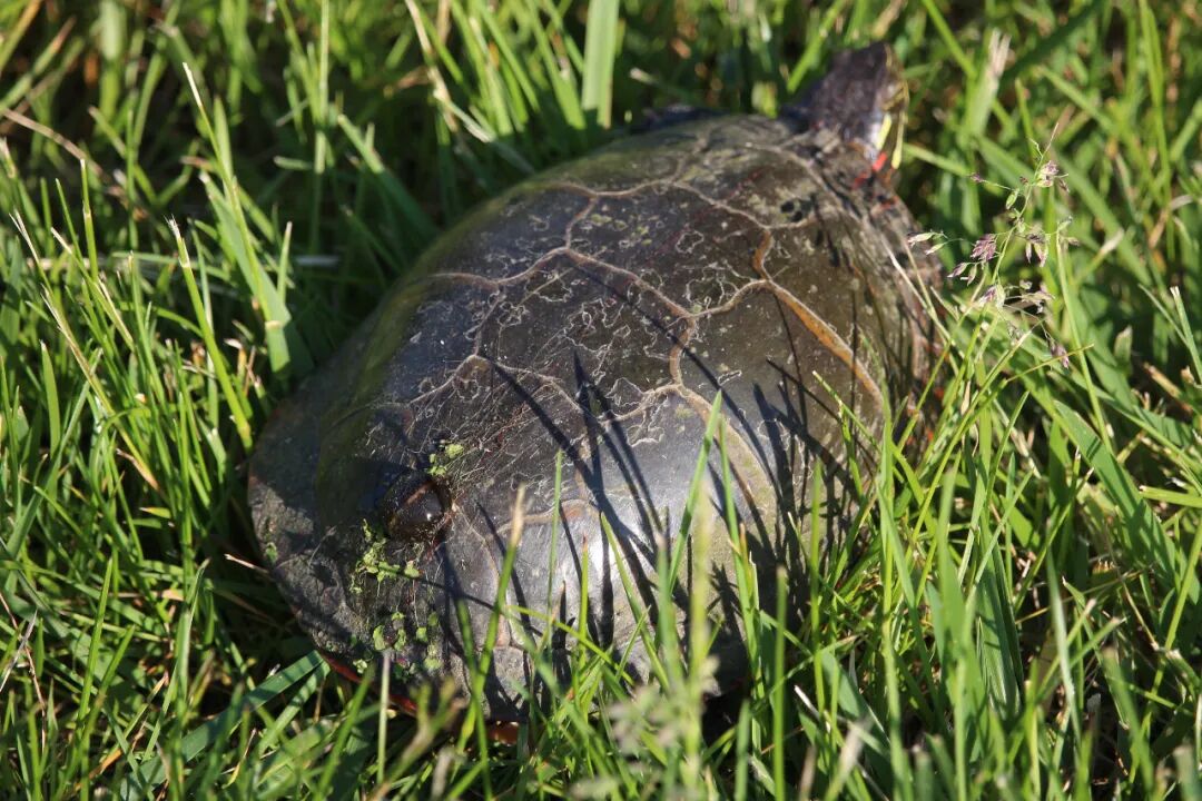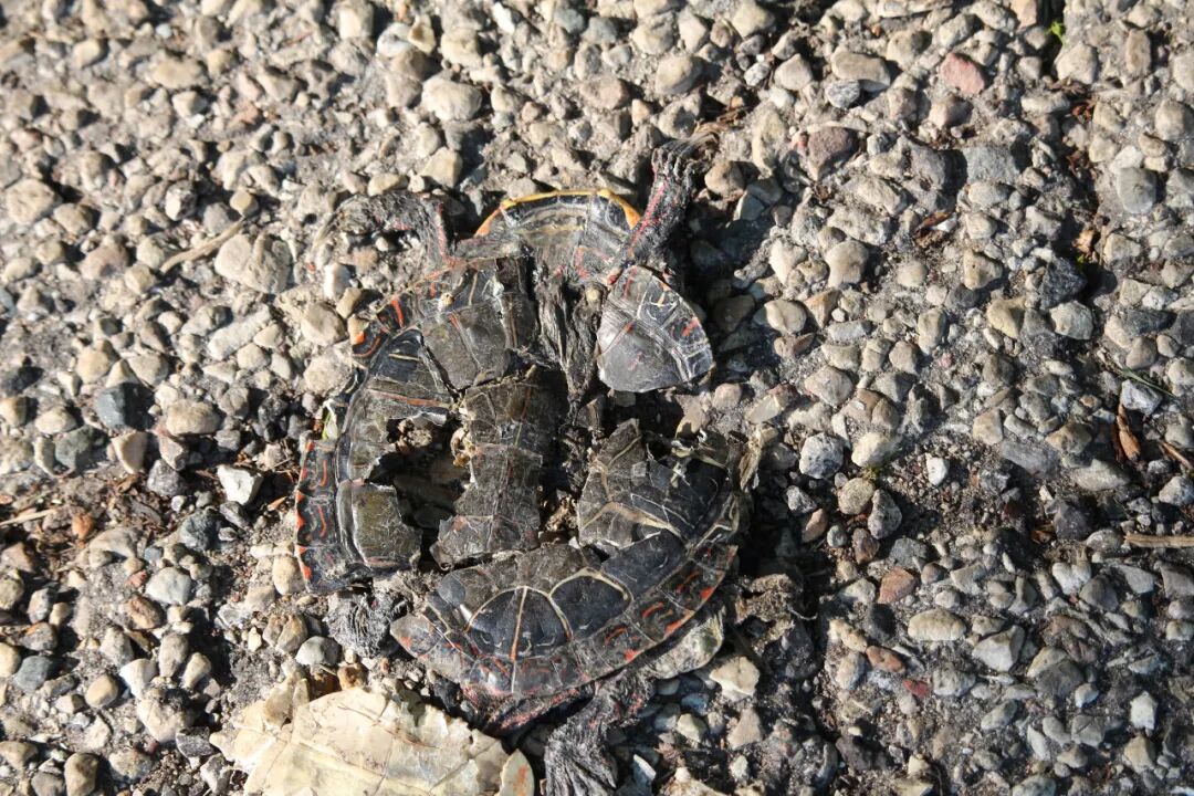 终于有一张特别清楚的,但小乌龟动不了了,它在一条大路上被压扁了。