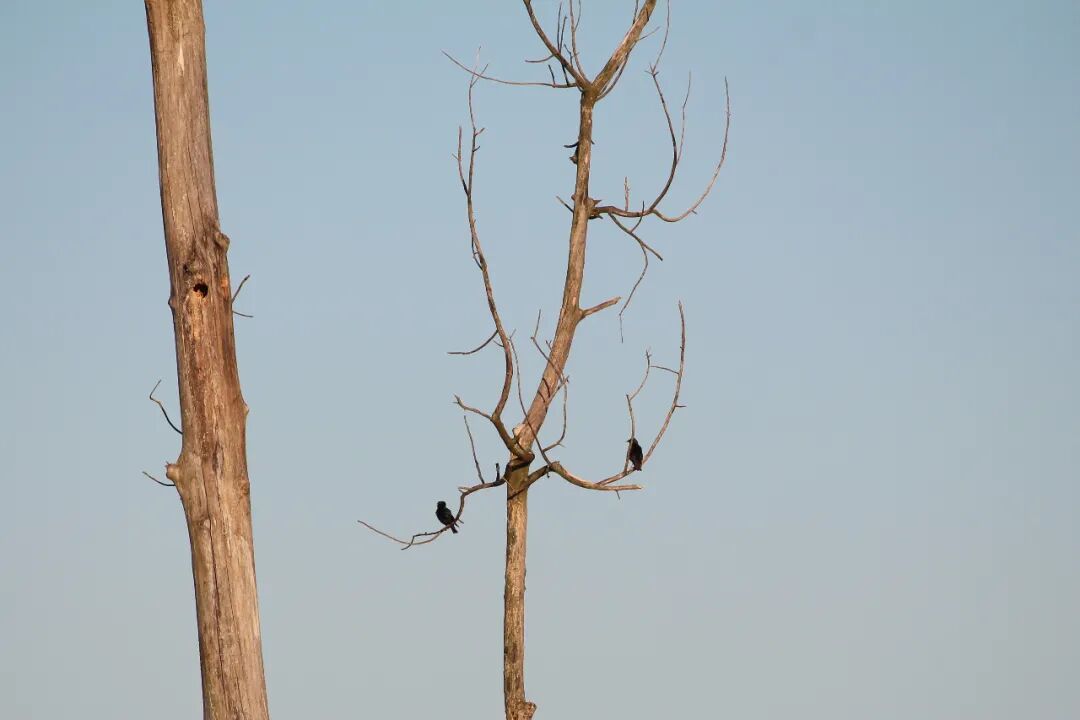 一只红翅黑鸟飞过来,停在了鹿的后背上,转眼觉得不对头,跟着天上的鸟飞走了。灰鹭鸶站在枯木最高处,眺望,远方,天上出现了霞云,淡粉色成团,成丝,团也轻柔,丝也轻柔。草穗的轻柔在穗子尖上的无数细毛中,一点点淡紫色,在微风中轻轻摇摆,淡淡地发光。野花开了,这儿一簇白,那儿几多白,无论这儿或那儿,都白得无比纯净。