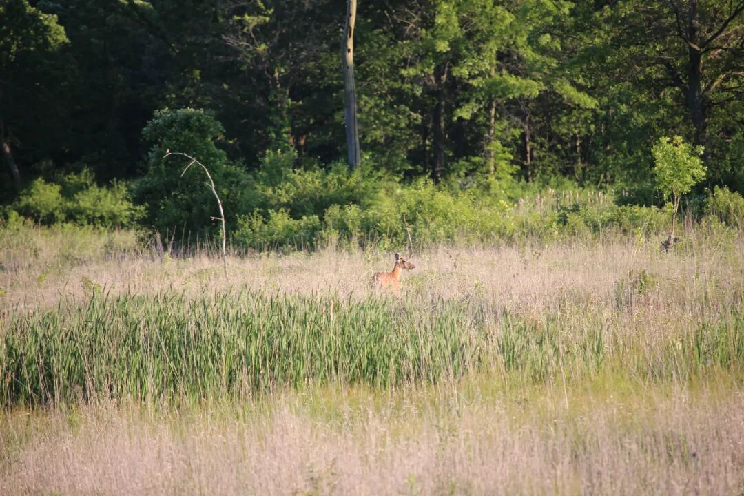 哇,是小鹿,你又来了。小鹿站在远远的草地中央,回首,正与我目光相遇。这一次,它没有低头吃草,眺望了我几眼后,它就走向绿草深处,一步,又一步,回头,再回头。小鹿就这样走了,留下一团金色在我的惊喜之中。 2020.6.14/15 于芝加哥郊区 注:记6月11日,14日,在野地里两次与小鹿相遇。