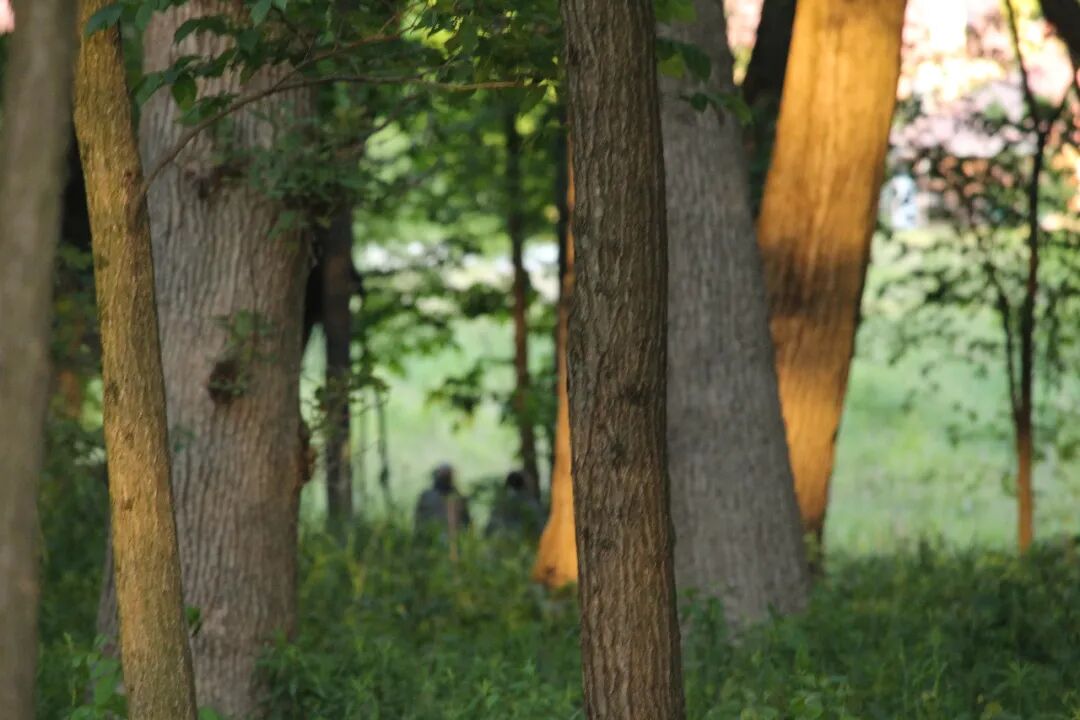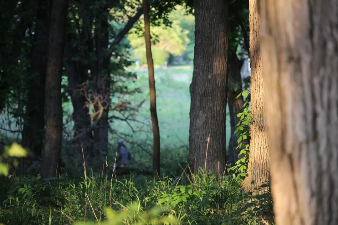 前天黄昏我一个人走进林子里,突然隐隐约约听到人声,声音挺低沉的。谁啊?我向前看,转向后看,都不见一个人影。 成了两个人的声音,断断续续。不会是从林子里传来的吧?我站住了,细细听,竟然真的是。目光赶紧搜索林子,什么也没看到,那低沉的声音愈发阴冷,说的是英语。 闹鬼了?! 莫非多少年前这里有个黑人被白人害死了,埋在林子里面。转念又笑自己,你有毛病了。这里几十年前就是荒地。 主,你说得对,不要怕。安静了一下,我用目光继续搜索树林。啊,在林子的边上看到了一个人影,接着,又一个。天哪,他们俩是怎么从荒地走进林子深处的? 不管了,是人。 拍张照片为证。