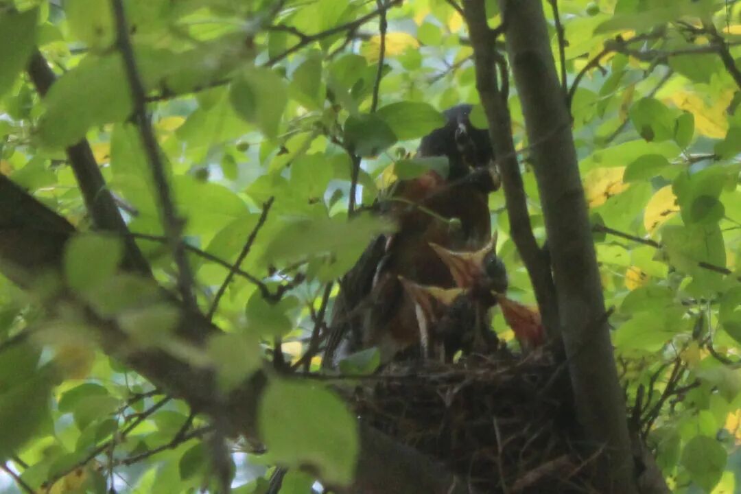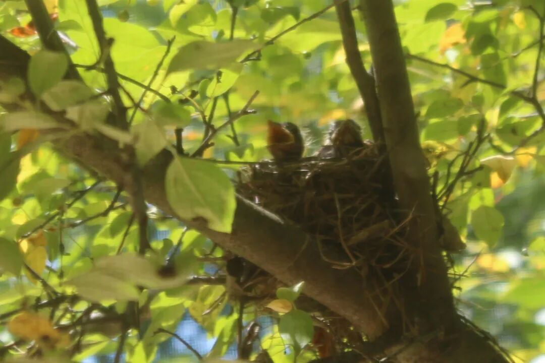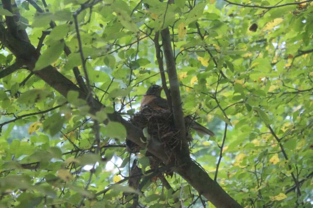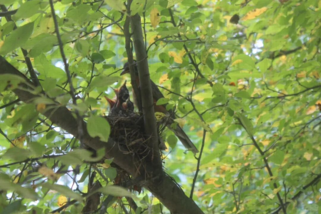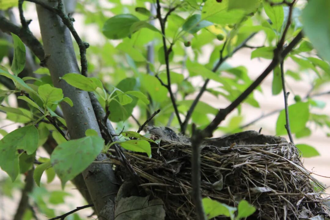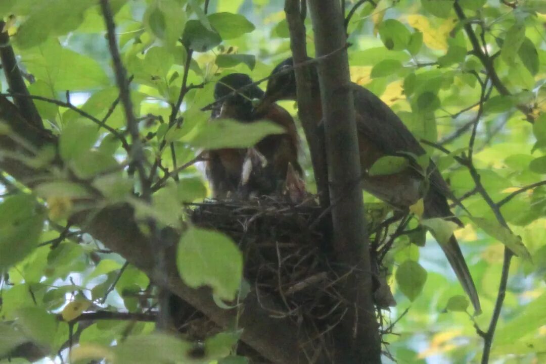 屋后有棵樱桃苹果树,有一天无意间我发现树杈子上多了个东西,细一瞧竟是个小鸟窝。一只知更鸟正站在窝边。见我在屋子里看它,知更鸟叫了两声后飞走了。过了一会儿又飞回来,守着窝。看我退后了几步,它便卧在鸟窝上,整个身子把个窝捂得严严实实。 原来是知更鸟正在孵小鸟。 好奇,第二天早上我走到树下想看看有几个鸟蛋,还没等我靠近鸟窝,老鸟一下子就窜起来,“嘎嘎”地大叫,边叫边飞,一会儿从我眼前飞过,一会儿从头顶,叫声声声尖利。 它是在吓我,赶我走。