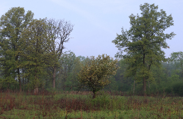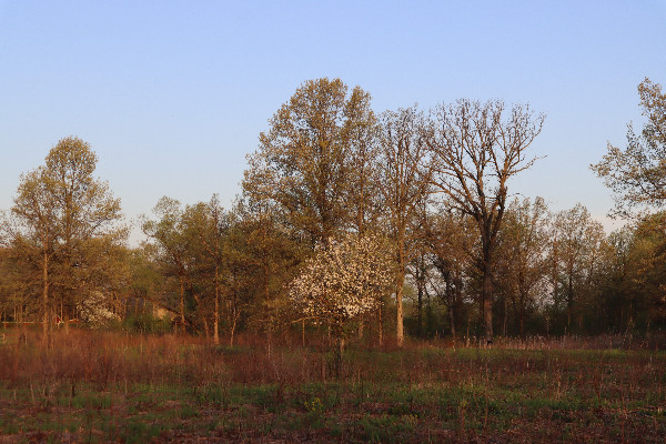 野地北面的野草丛中,有一棵苹果树。草丛被两条土路夹着。小区里的人家也有种苹果树的,就在靠马路的草坪边上。时候到了,它们先后都开花了,粉白色的花。 几日后,土路的涵洞里出现一条吊袜带小蛇,没有毒的。但不知道为什么,我还是想到了创世纪的故事,那里也有智慧树,人们往往认定是苹果树;也有蛇,魔鬼撒旦的化身,也许,附体更准确一些。 结果,人因为贪心,被蛇欺骗,吃了苹果。堕落开始了。 野地这棵苹果花谢了,结果了,果子变红了,远远地看,挺好看的,没打农药也没上化肥,肯定吃起来有营养。但我没有去摘,其他路过的人也没有,那是留给动物的。 土路上,几次看到了死蛇,不知道是被什么咬死的。它们平时吃什么呢?会吃老鼠和蚯蚓吧?有一次,涵洞出口前的小水坑边上,盘踞着一条蛇,坑里的水快要干了,几只小鱼在里面蹦跶。吊袜带蛇也吃鱼吗? 现在,野地里那棵苹果树的果子全掉了。小区有户人家,掉下了将近七八十个苹果,被堆在树根旁边,留给动物吃,有的,已经被咬了几口,不知道是野鹿咬的,还是小松鼠。 2022.11.12 星期六 深夜十点半