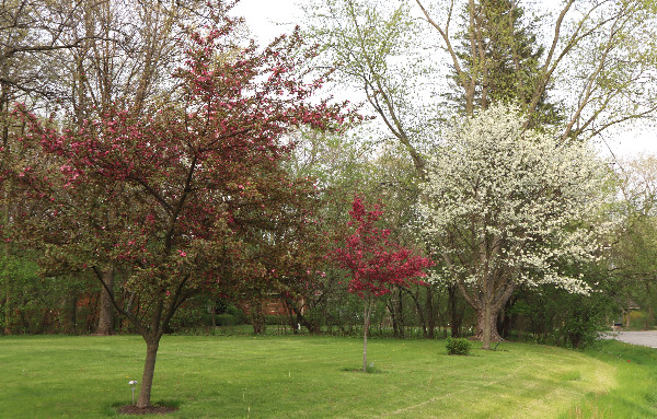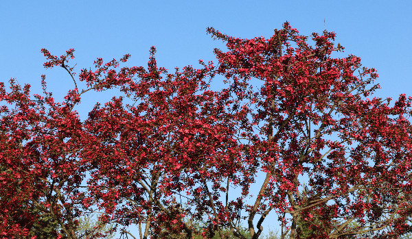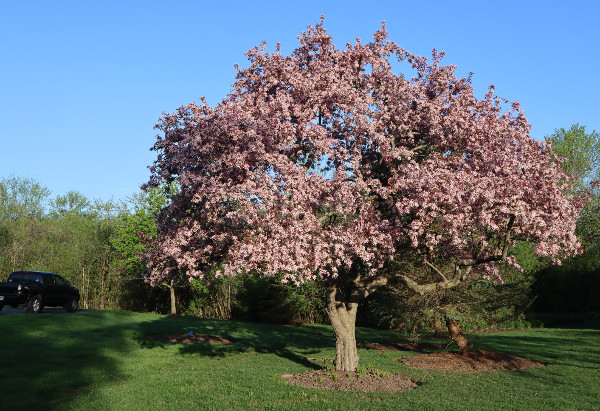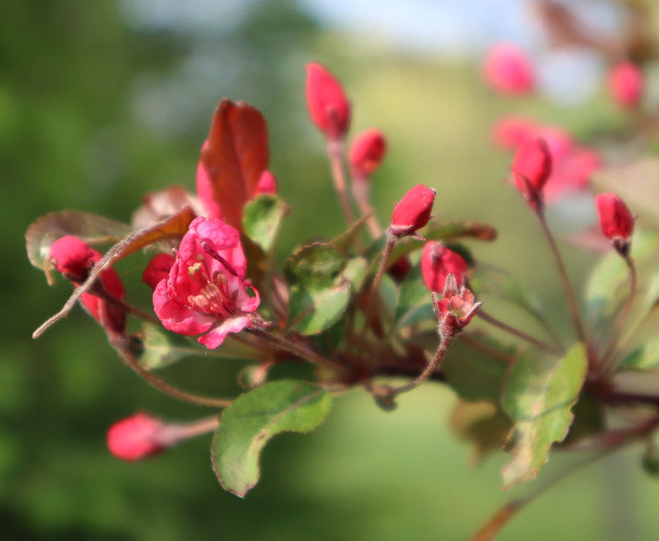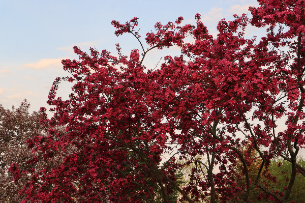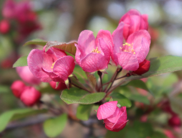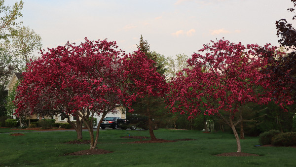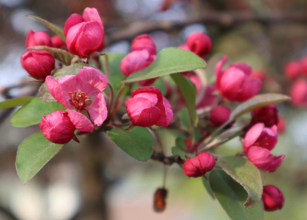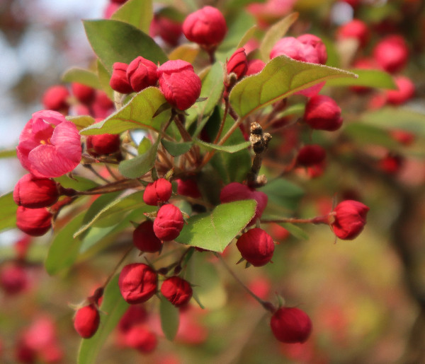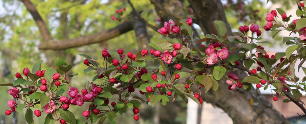 大惊喜,绿肥红瘦的竟是你! 范学德大惊大喜,原来它叫Malus coronaria,海棠!更具体一点,北美海棠(Malus 'American' )。错,错,错,我一直把秋海棠视为海棠,浑不知秋海棠是草本植物,而海棠是木本植物,灌木,小树。天哪,听了说了这么多年海棠这个词,竟从来没有把任何一棵开花的小树认作为海棠。 海棠是花树。 最近这三十年来,我无数次看过它,年年春天都会看到,昨晚还整理了它们的照片,又一次惊叹,密密麻麻的花。今早上再次立志,我该写一写它们的浓妆之美了。它们在我的相册里呆的时间太长了,再不写,就要卸妆了。于是,我写了以下的开头—— 立冬了,冬令时过了快一个礼拜。窗外的大树上,只有几株还残留着几片残叶,要是再来一两场大风,它们就都落下来了。几天前一场大风呼呼作响,落叶纷纷,随着风飘荡,旋转,翻腾。 我怀念绿叶,更怀念那些开满了红花的花树。但它们叫什么名字呢,我好奇了,上网查,竟然是海棠。Malus 天哪。 愧喜交加。孔老夫子说得好啊,多识于鸟兽草木之名。我无知了,竟然不知道海棠的名。也许,是因为小时候生活在中国北方,从未见过海棠树,且误将秋海棠视为海棠,先入为主,以为海棠就是秋海棠这样的,所以就不探究真相了。尽管但这么多年见过它无数次面,却没问一句尊姓大名。幸好,今天知道了,好开心,一声惊叹,原来是你。 春天里,丁香花谢了,海棠花就开了。这时,小区里家家户户的草坪也全都绿了,橡树、枫树和杨树也冒出了新叶,长长的柳丝由鹅黄变成了嫩绿,从地面到半空,绿意盎然,似乎什么也压不住了,或者,无法配搭。 就在这时,海棠开花了,这家一株,那家几簇,一树树红色成团,在几米高处,红与绿,绝配。 海棠花很小,很多,也就几日的功夫,它们就挤满了枝条,密密麻麻的,那红粉之气,似乎让树干喘不过气来。我甚至觉得它们太多太艳了,有些俗。好在绿色浓,能衬托住。散步时,在几十米外看海棠树,那是一团梦,红粉轻柔,模糊,欲飞又止,无言。 这就是“浓妆淡抹总相宜”的“浓妆”吧,丰腴之美。华丽。 “淡抹”需要近观,走到海棠树下,仔细端详一朵小花,一朵就足矣。哇,好清秀,小碗型,红花面,红里透粉,粉中带红,丝丝花脉,深红。几点鹅黄,正在几根花蕊的头上,是桂冠。有时,一只小蜜蜂落下,带来一缕清风,扬起红波数道。 最美的的海棠含苞待放之时,一个个小红苞如豆,红豆,借用古人的诗意,多少相思就在红豆中。 因着写这篇文章,对海棠花的思念竟然多了几分亲切。那是我查到了几首与海棠有关的中文诗词。 苏东坡在《海棠七言长古》中有几句说得特别地道: 也知造物有深意,故遣佳人在空谷。 自然富贵出天姿,不待金盘荐华屋。 对了,凡花草树木,皆有其独特之美。就如海棠的丰腴之美一样,这出于自然,本乎天性,饱含着造物主的美意。 苏东坡的七绝《海棠》 ,大概是最美的海棠诗了。 东风袅袅泛崇光,香雾空蒙月转廊。 只恐夜深花睡去,故烧高烛照红妆。 后人解释,后两句的典故说的是唐玄宗与杨玉环的一段韵事。出自《海棠谱》转载的《冷斋夜话》:“上皇(唐玄宗)登沉香亭,召太真妃(杨玉环),于时卯醉未醒,命(高)力士使侍儿扶掖而至,妃子醉颜残妆,鬓乱钗横,不能再拜,上皇笑曰,岂妃子醉,是海棠睡未足耳。” 海棠花没有睡够,妙语,贵妃花。此后“海棠春睡” 成为后代文人骚客不断吟咏、描绘的题材。 在《红楼梦》中,曹雪芹也借林黛玉的笔写了一首七律:《咏白海棠》。其中两句绝美:“偷来梨蕊三分白,借得梅花一缕魂”。写花乎,写人乎?高洁。 我最熟悉的是李清照的《如梦令》 : 昨夜雨疏风骤,浓睡不消残酒。 试问卷帘人,却道海棠依旧。 知否知否,应是绿肥红瘦。 明白了,李清照看到的是海棠树,在海棠花要谢了的春末夏初,又一夜风,又一夜雨,绿叶长得更大了,绿肥;花已残,但余韵犹存,淡粉,是红瘦。 2022.11.12 回忆芝加哥的春夏之际