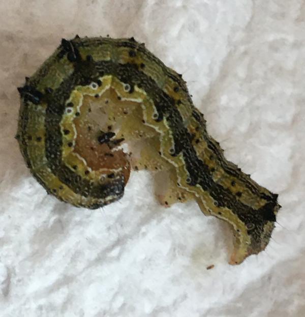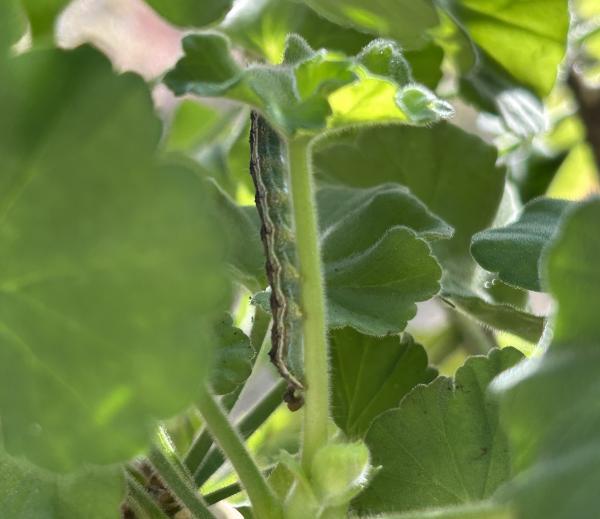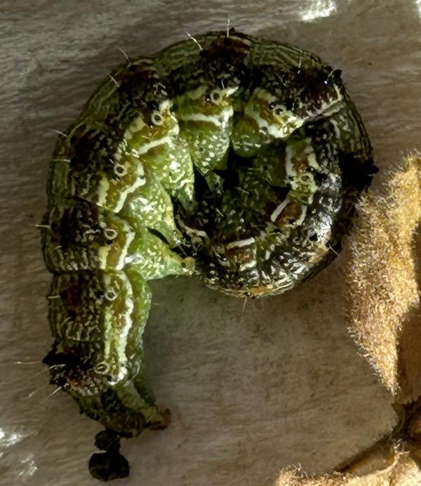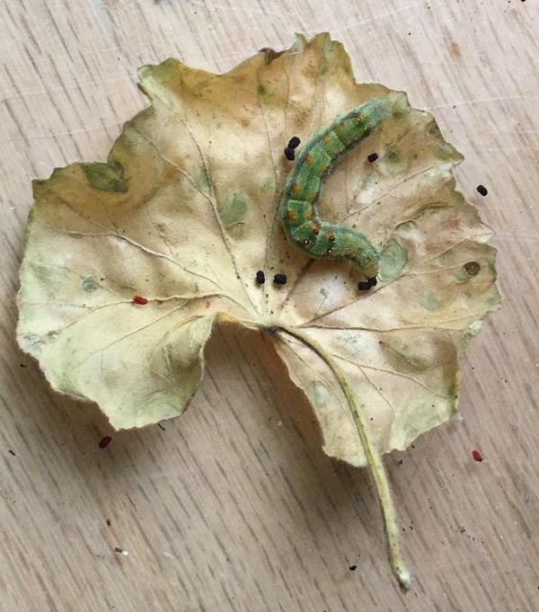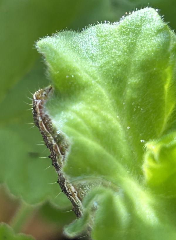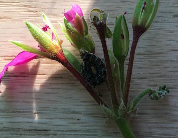 十月底要下霜了,我把门口的三盆天竺葵搬回家,放到了凸窗的窗台上。搬动前,还给花盆里添了一些花土。 转眼间十一月上旬就过去了,中旬的第一天,我写作累了,站到图窗前换口气,噢,窗台上怎么这么多黑点点,细看,断定是虫子拉的屎。再看,好几片花叶子或中间被咬出了几个窟窿,或边上被咬成锯齿。 可恶的虫子,你藏在哪里? 一个家伙竟然肆无忌惮地趴在花茎上,大概是吃撑着了,正伸开肥大的身子,一截又一截,全都是圆滚滚的,我用纸巾把它一摘下来,它立即圈成一团,首尾相连。 有没有同伙? 它闭口,拒绝交代。 我自己找,看花茎,没有;看叶子,还没有。从反面再看叶子,一个狡猾的害虫,藏在花叶的背面。 拿下。 看另外一盆天竺葵,一眼就看到窗台上的虫屎,一眼就看到一个害虫正得意,趴在花茎上,还扬起了小脑袋。 你唯恐死的不早。 另一株天竺葵在另外一个屋,没有虫屎,也没有虫子。 接连看了几日,再也没有害虫了。 不敢想象,二十天后,又见到了一些虫屎,这次有经验了,不一会儿就抓住了害虫。只是把它放在纸巾上后,细细看,有几分惊讶,它身子的颜色竟然如此美丽,黑绿白三色条纹,有规律地排列,稳如起伏的波浪,一小截,一个圆点,圆圆的白圈里面,一个小小的黑点,就好像一个小眼睛。 这些小眼睛在看什么呢? 2022.12.26 追击