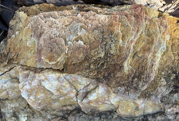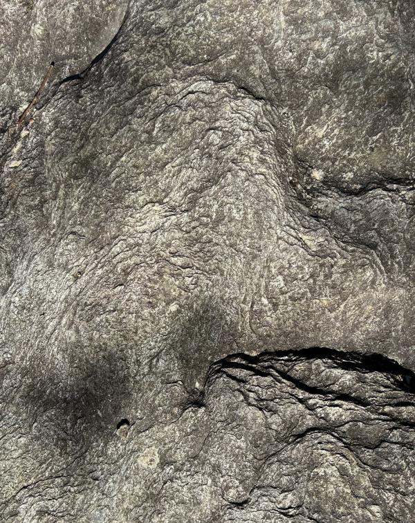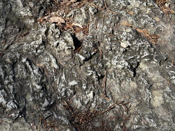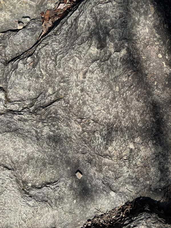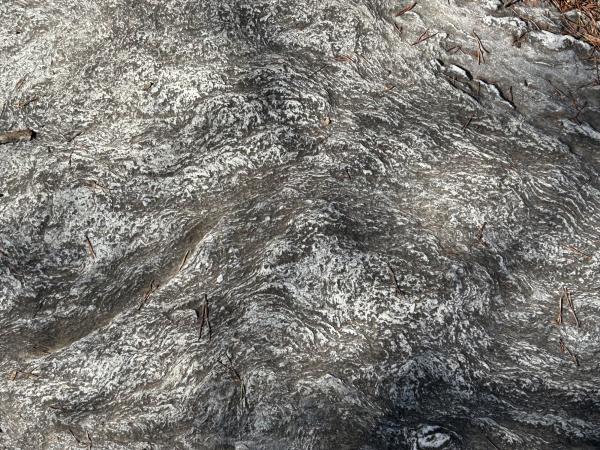 Hanging Rock State Park(悬岩州立公园)有十几条徒步旅行的小径,有的路面铺着小石子,有的就是泥土。走向野餐区的一条小径边上,有一些石头块,不大不小,或躺,或立。蹲下来系鞋带的时候,我看到了了一块石头上的纹路,正是青石山水。这是哪一位中国山水画家梦中神游到此,尽情泼墨?然后,几百年过去,墨汁渗透进石头里,每一个线条都风骨硬奇,清俊。 也许,是几千几万年前,或者,更早更早,自起初,有了天地就有了这块石头,风沾着雨滴,雪化了阳光,造物主就借着它们画了又画,画出了一幅幅石头山水。 石头水墨的线条多弯曲,是借水,还是思水,流,不舍日夜,流出九曲十八弯,湾上,湾下,湾凸,湾凹,水在石上中流,静流,一静千秋。 也有的石头水墨与雕塑融汇,雕出了什么,我从这边看,从那边看,看到了,一笑,再笑,笑与笑不同,是雕塑的另一面又成了一个新景。 就这样看了又看,一个念头来到心中,沧海桑田。很久很久以前,石头在大海深处,深水静流,反复激荡。直到了那一刻,天崩地裂,群山从海底突起,奔流的大海霎时间静止,水花水线水波凝成了石头,于是,一幅幅石刻水墨问世。 2023.1.31 下午完成于北卡