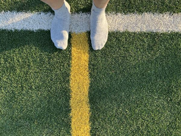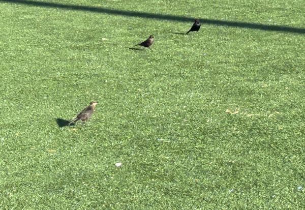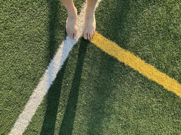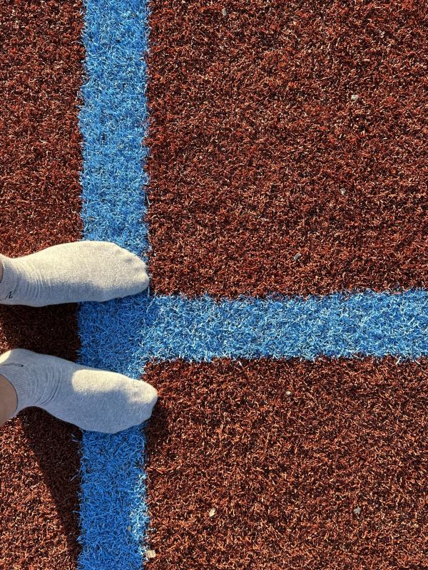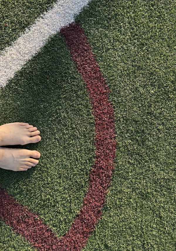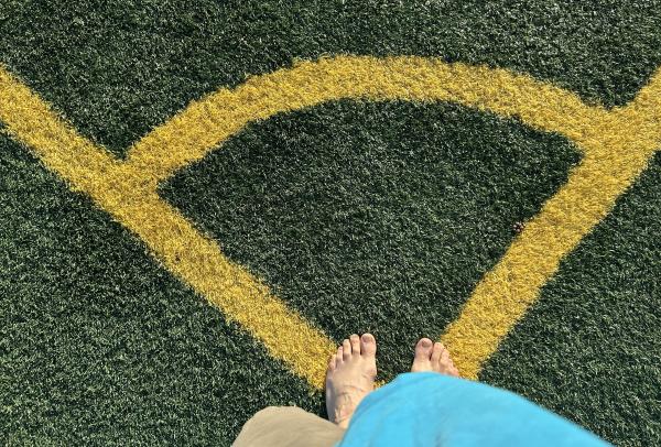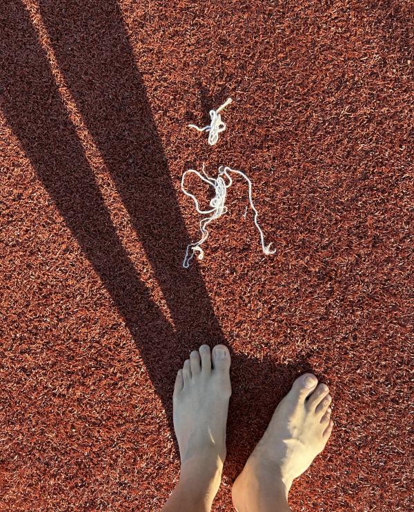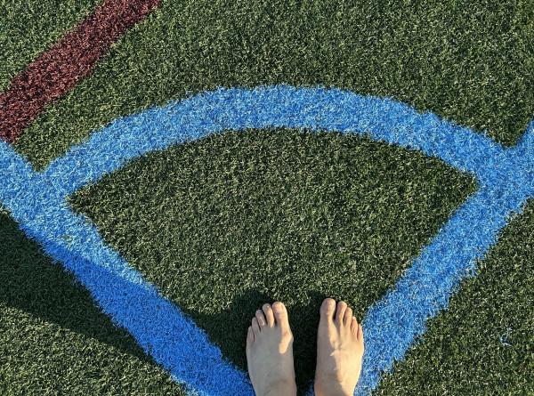 醒後看手機,六點半。想想今天的行程,當地時間下午一點就要從加州起飛,晚上十一點才能到達北卡的夏洛特,看來,每日的散步計劃很難完成了。 朋友還在酣睡。不管了,悄悄推開門,到外面走走。路,周四傍晚跟朋友走過。 剛過馬路,右手邊一個建築,還有許多體育場地。原來,這裡是Woodland社區和老年活動中心。對面是狗的活動中心——狗公園。再往裡走,幾個運動場地,是棒球場地吧,地面上鋪了一層人工草皮。 脫下鞋子,穿着襪子走。走了不遠,見一女子光腳走,立即效法,脫下襪子,與鞋子一道,放在門網前,守門。 暖意從草皮傳上來,微微熱,樹蔭處,微涼。畢竟不是真正的青草,有點紮腳,也是微微的,走着走着就感覺不到了。太陽升起來了,從腳底到頭頂,全都熱了。 風輕,清風。微微拂起體恤衫。 漸漸地注意到了腳前的雜物,噢,一個煙頭,僅僅剩下過濾嘴。還有堅果的硬殼、紙片、線頭、瓶蓋、手環。好幾根羽毛,是鴿子,還是烏鴉的?它們時而也在場地上走,有的,還留下一堆糞便。那塊在門網邊上的口香糖紙,大概是從守門員從嘴裡吐出來的,當時他緊張,還是閒得發慌。 我也偷得片刻閒,給兩隻腳來點特寫,大都是在邊角處。影子,一再拉長,在綠色中,在紅色中。 出汗了,好爽,平生第一次光腳在人工草坪上走了這麼久,整整一個半鐘頭,八千多步,就一個人,高興時還來幾嗓子:“主啊,我讚美你,因為你救了我……”。最後一張自拍,站在門網後,讓網纏住我的臉。 這象徵着什麼呢? 2023.7.3日記事 完成於2023.7.5 晚,於夏洛特