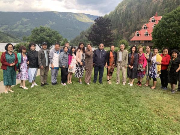 當代中國人吹捧皇帝的話,無一人能超過林彪,他說毛是“偉大導師、偉大領袖、偉大統帥、偉大舵手。”這“四個偉大”里隨便挑一個,就足以讓天地變色了。 我挑了一個“偉大領袖”,不過是用來形容陳瑞琳,或者,“文壇領袖”,再或者,“海外華人文學研究的領袖”,這絕不為過。這一次的旅行團,在籌備並召集“第二屆世界華人作家筆會”的其他兩位領袖張輝和馬麗不在的情況,她獨自指揮一車人馬,帶領我們從一個景點,奔向另一個景點,也就是,從勝利走向新的勝利。 7月14日上午,當我們去班芙公園旅遊的大巴一啟動後,我們這五六十作家,就成了在一輛車上的人。不久,“餵”的一聲,領袖誕生了。她就是陳瑞琳。非常遺憾,準確時間我沒記錄,記住了就是歷史性時刻。也罷,姑且算為9:30吧。在早晨八九點鐘的太陽升起半個小時之後。她最開頭說的是什麼?我繼續非常遺憾,沒記錄,也沒錄音。不會是女士們、先生們。大概是“各位朋友”,也許還有男女作家們,從小我們就知道,誰是我們的敵人,誰是我們的朋友,這可是革命的首要問題。自然,也是旅遊的首要問題。 目前的局勢是這樣,悶,乏味,人心不振。六七個小時的車程,車被夾在大山中,人圈在車裡,老天還來搗亂,灰濛濛的,讓你連大山也看不清。作家們的詩意無法迸發,成了睡意。 要解悶。於是,陳瑞琳就親自動員親自指揮了,娛樂娛樂。連我座位後八十上下的洪先生,藝術細胞都被激活了,用什麼語來,唱正宗西洋歌劇。還有一位女鋼琴家,唱了東方小夜曲——《小河淌水》,好聽極了,情景交融,眼底,一條小河正在馬路邊流淌。來自歐洲的大作家方麗娜,特別擅長用河南話表演,她的兩句標誌性語言已經成為我們演出的標誌: “請掌聲鼓勵”。 “色-誘-他-毛-摟”。 後一句的原創是她中學時的英語老師。 車裡有了笑聲、掌聲。 還有人講笑話,我也講了,說真理報要發表一張蘇共總書記赫魯曉夫視察集體農莊養豬場的照片,編輯們為文字說明發愁,一說:“赫魯曉夫和豬在一起。”被錯。又一位說:“豬和赫魯曉夫在一起。”也錯。後來一位編輯說有了:“左起第三位是赫魯曉夫同志。” 我都講到這份上了,還是沒有人笑。羞得我連下半截都不敢繼續講了。話說,去年某日,我把這個笑話和十幾個蘇聯笑話整理成一篇笑話集,準備發在微信號,但怎麼也無法通過微信的機器審查。最後,我不得不一行一行地堆象形文字,這才發現,敏感詞是三個字:“總書記”。蘇聯的也不行。 陳瑞琳講了一個別人講過的笑話,大家哈哈大笑。話說,文革期間,人民公社的社員們下水田摸泥鰍,摸着摸着,一婦女大叫,我摸到了。她邊上的老爺們發飆,那是我的泥鰍。大嬸立即政治正確,什麼你的,就連你身子都是公社的。 我讚嘆,這是一個非常高級的紅色笑話。 從什麼時候轉向了,我也記不得了。陳瑞琳提議,每人講十分鐘故事,主要是關於自己的寫作。太好了,這次筆會,從頭到尾都是大會,缺的就是小會,大家湊到一起隨便聊聊。 開聊。韓長福還錄像,後來,又要求整理出文字,如今,好多已經在公眾號上發表了。特別精彩。 施瑋我很熟悉,但她開口成章,咋車上剛剛寫就的新詩,還是讓我有些吃驚。“語言的軌道錚亮,/架在寫者的骨骼上向前延伸……”好美的想象。 她跟大家分享了四個字:“情義無價”。說到情,她講到“文友之間的友誼也注滿了純真無私的情。”當年她近於躺平,陳瑞琳看了她的小說《世家美眷》之後,非常讚賞,常常電話與當面鼓勵她:“不要浪費自己的才華,要為文學拼命。” 聽到這我還等下文,但她轉到“義”字上了。我心裡嘀咕,施瑋,該提我了吧。沒有。 那應該是世紀之初吧,我與施瑋在樓角第一次見面,我鼓勵她拿起筆來,繼續寫。也許,我的話沒有像陳瑞琳那樣“語重心長”,其實也夠重的,要像巴赫作曲那樣:“榮耀神”。 李峴是美國中文作家協會主席,她用 羅曼羅蘭的名言與大家共勉:“世界上只有一張英雄主義,那就是看清事物的本來面目,依然熱愛它。”李峴說到了她的長篇小說《無處安放》,我在心裡接茬,那一定是靈魂。她介紹她們協會有六位成員獲獎:史德亮、秦劍、任國平、曾曉文、李峴和呂紅。 呂紅,會議期間曾給我一個名片,一看,《紅杉林》雜誌美洲的主編,當時我就好奇。聽她講,這個雜誌已經創刊18年了。陳瑞琳曾評價, 《紅杉林》是華文文壇的一道彩虹,架起了一座文化交流的橋梁。同時。呂紅還是美國華文文藝界協會會長。我納悶了,她那麼瘦弱,怎麼有那麼大的精力。她還寫了一部長篇小說《美國情人》,於文濤評論:“十年前,《美國情人》飄然而至;十年後,《美國情人》風韻猶存。”似乎已經成為海外華文的當代經典。 在會上就聽過趙美萍講過她的獲獎長篇小說:《誰的奮鬥不帶傷》,講到了她苦難的過去,怎麼從一個採石女成為一個作家,後來又嫁給一個富豪。恍惚中還聽她說一句,苦難是人生的巨大財富。我當時還嘟囔了一句,那也得熬過去之後。對於許多人來說,苦難就是災難,甚至是極大的災難。 幸好,她在車上講了,在命運的最低谷,她也絕望過,甚至想過自殺。但閱讀和寫作,把她從採石場的礦坑裡拯救出來。 她講到有了些錢後,她是如何回到故鄉,看望並幫助那裡的麻風病人。原來,中國還有麻風病人,我這是第一次親耳聽到。她說自己剛剛寫了一部非虛構作品——《隱居者》,描