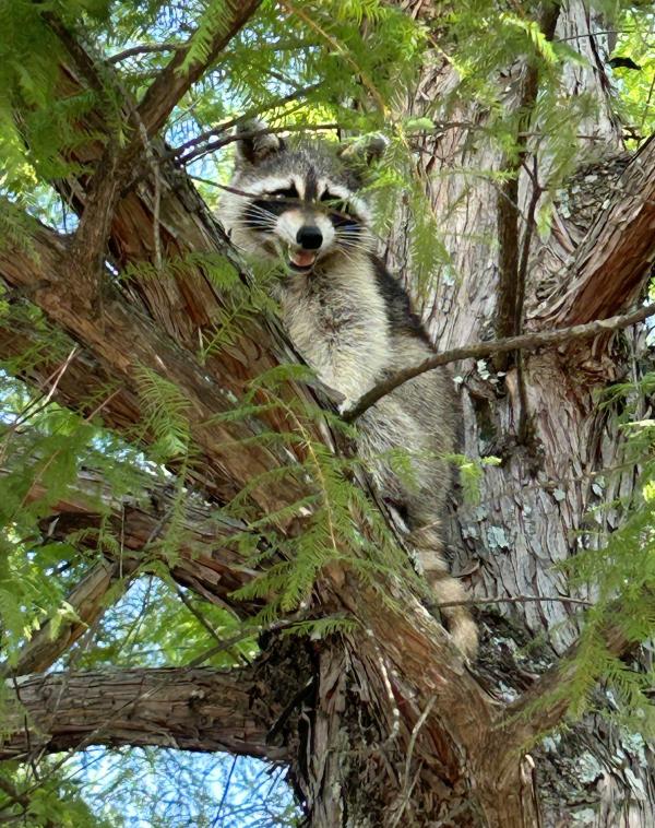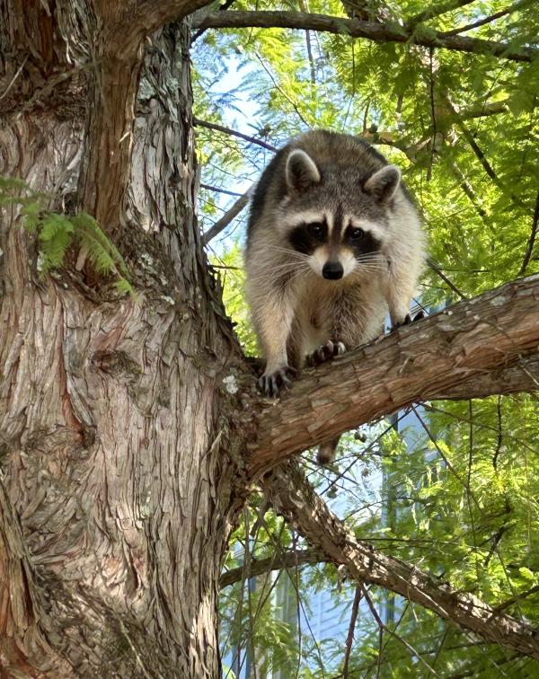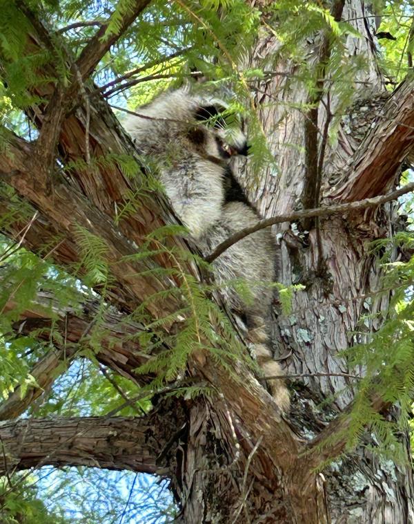 剛搬進小區,路不熟,沿着主要的街道閒逛,認路。快到上午十點了,路上幾乎沒有人,也不見狗出來散步。一戶人家窗戶前,有個小動物,是貓嗎?個頭大了一點。它似乎很在乎自己的身份,不動,等我靠近了看清楚。 看清楚了,你是小浣熊。像熊貓,好憨。 是嗎?我還會爬樹,也像大熊貓。傳遞罷清楚的信息後,浣熊順着門前的樹幹向上爬了,一邊爬,一邊低頭看我,眼睛亮亮的,爪子尖尖的,那神情有些迷濛,像是問,你會爬嗎?會嗎?又似乎是挑戰,你倒是上來啊,敢嗎? 我認輸。站在七八步外的樹前,靜靜地觀看,看得浣熊都不好意思了,轉身,爬向更上面的大樹杈,坐好後,扭頭看我。看了好一會兒,輪到我不好意思了。不打擾你了,我走。走了兩步又回來對小浣熊說,忘了告訴你了,我喜歡你,大大的黑眼眶,還有兩道白眉毛,有點像聖誕老人。 告別浣熊後想,這是第一次這麼近距離地看鮮活的浣熊。在芝加哥地區,只在馬路中央這麼看過,但它們已經被車壓死了。是芝加哥地區的浣熊多嗎?時常看到它們在輪胎下喪生。自己也常常問,它這麼像熊貓,這麼可愛,但命運卻如此悽慘?難道,動物的生命也有貴賤之分? 是也? 非也。 2023.7.27,上午9:55記事 完成於2023.8.16 下午4點