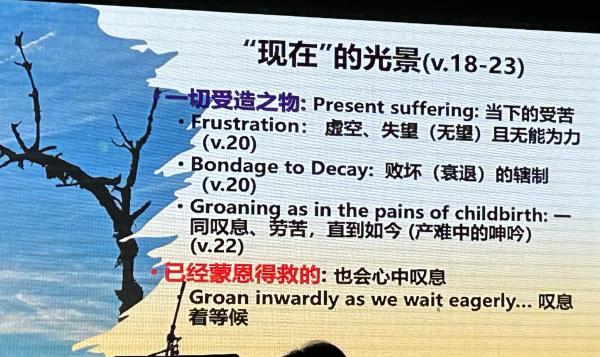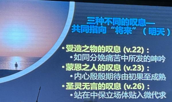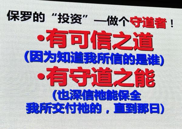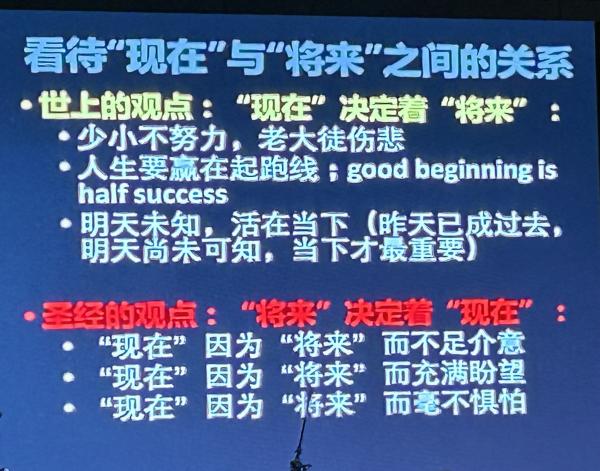 这一次参加“2023年第十八届卡罗莱纳地区夏令营”,我见到了老朋友张路加牧师,他是营会的主要讲员 ,讲道的主题是“我知谁掌管明天”。 1996年我参加了在芝加哥召开的大陆传道人灵命使命研讨会,那是历史上的第一次,来自(红色)中国的二十多位传道人,聚集在吴涵仲、林道真夫妇家里开始了聚会。我就在这次会上认识了张路加。 他第一次讲道结束后,我们俩坐下来一起聊时,颇为感慨,我们数点着一个个朋友,惊叹、叹息。 营会期间,路加连续讲了五场道,我全听了。这是我们认识二十六七年来,我第一次有机会安静地坐下来听他讲道。 期间,我还在手机上做了一些笔记,又拍了一些照片。路加很幽默,这是我第一次认识到的,有时被他的幽默吸引住了,光顾着笑,竟然忘记了做笔记。所以,只有些片段。这几天,我整理了一下。 张路加牧师是从时间+时代入手的。 我记录下的第一句话就是他引用了一句流行语:“明天和意外不知道哪一个先来!”这凸显了人生的不确定性。尽管人有昨天、今天与明天,但明天却是不确定的,意外随时有可能先来,使今日成为最后一天。 明天不在我手中,从我出发,明天终将不再来,死亡结束一切。唯有上帝才能将明天赐给我们,因为他是时间的创造者并且至今一直掌管昨天、今天和明天。 这次营会的主题曲就是:“我知道谁掌管明天。”我们唱了一遍又一遍,深信那位牵着我手的主,必将带我们兄弟姐妹一同走入明天。 说到这个世界,圣经有一个基本判断:现今的世界邪恶。不法的人与事泛滥,天灾人祸接踵而来。路加提到两次大灾变:“7.8;7.9 ,两日,全球平均单日气温最高;土耳其“双地震”,7.5级,非常罕见。” 自然,最醒目的是三年前新冠引起的大瘟疫。隔离,成了存在的一个基本状态:“人期待走出隔离。但实际上,人与光隔离;与家人隔离;与他人隔离;与自我隔离。”所谓与光隔离,就是与上帝隔离,人因着自己的罪与上帝隔离了。 张路加牧师说了一个故事。作为“留在德国的华人,人人都成了刘德华。”因着疫情隔离,人不允许出门,但狗除外,可以溜狗。他们楼里有家有一条狗,人人争着溜那条狗,狗估计都困惑了,发生了什么,人怎么突然对我这么好? 社会、真相:人们概括:“生,容易;活,容易;生活,不容易!”熬过了大学四年的同一寝室的学友,临别之言竟是:“谢谢你不杀之恩。”同窗人到中年,梦想竟然是“喜出(轨)望外(遇)。” 欺骗。自上而下,自下而上。无数的韭菜赞美镰刀,“骗子取决于傻子的数量。” “过去是养儿防老,如今,养老防儿。”另外的词:啃老。 无可避免的终局:离婚了,愤愤不平的另一位说:“总有一天会等到你。” 大文学家说的雅一些,在萧伯纳的墓碑上刻下了一句话:“我早就知道无论我活多久,这种事情还是一定会发生。”而2007年英国评出“最具创意”的墓碑, 竟然只是一个词:“Offline”(离线) 但是,宋尚节的墓碑上却写着圣经的一句话:““是了,我必快来,阿门。” 路加讲了一位牧者的故事,他在波兰,自由传道多年,正准备到德国牧会,就在办理签证期间,遭遇疫情,很快就被主接走了。他留给妻子的最后一句话是:“无论发生什么事情,你都要喜乐。”这个故事和这句话激励了许多困在瘟疫中的兄弟姐妹,在人看来是死亡的终点,但在基督里,他们看到了明天,并且是,喜乐的明天,因主耶稣基督与我们同在。 这位传道人成了一粒种子,他落到地上,死了,但却成为种子,生出许多新的麦子。这就是明天,是生命的延续。 因此,要遵从保罗的命令:“不为今天叹息”( 罗8:18-30) 不错,这就是“现在的光景:一切受造之物当下的受苦,虚空,失望且无能为力;生命受败坏(衰退)的辖制,一同叹息、劳苦,直到如今。”从保罗到如今,没什么大的变化。 不过,这“三种不同的叹息——共同指向“将来”(明天):受造之物的叹息(v. 22)如同分娩痛苦中所发出的呻吟;蒙恩之人的叹息(v.23)内心殷切期待由初熟的果子至成熟的果实;圣灵无言的叹息(v.25)站在中保立场体贴入微在天父面前为我们代求。” 唯有这后两种叹息引导我们进入生命,并带来上帝赐给我们的永恒生命。这生命一天天变得更像圣子耶稣基督。这生命指向明天,延续到明天。看哪,旧事已经过去,一切都成为新的了。日新,日日新。 张路加牧师指出:活在当下是当下最流行的人生哲学。 那么,如何看待“现在”与“将来”的关系 “世上的观点:现在决定将来: 少小不努力,老大徒伤悲 人生要赢在起跑线上。 明天未知,活在当下(昨天已成过去,明天尚未可知,当下才最重要) 圣经的观点:将来决定现在 现在因为将来而不足介意;现在因为将来而充满盼望;现在因为将来而毫不惧怕; 在现在和将来之间——心态:切望(充满热切的期待),指望(带着目的的盼望),盼望(存那独一的希望)。” 在信仰者的生活中,因着上帝的神圣介入,因为他的神圣应许——以马内利,我与你同在,因此,明天提前进入到今日,进入到当下,因此,当下就不再仅仅是囚禁于此的此时,而是与永恒相连的现在,“瞬间呈现永恒”。要铭记圣奥古斯丁的话:将你的过去,放在上帝的怜悯之下;将你的现在,放在上帝的慈爱之中;将你的未来,放在上帝的供应之上。 路加曾提到“三句投资箴言:不要放弃或轻看你已经拥有的;不要后悔或留恋已经失去的;不要相信或迷恋根本不可能的。” 但是,信仰者正是相信根本不可能的,因为“