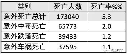 这当中,不按年龄组的意外事故死亡