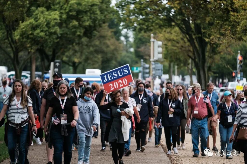 相對“讓美國再次偉大”姊妹的T恤衫寫的是“讓美國再次敬虔”