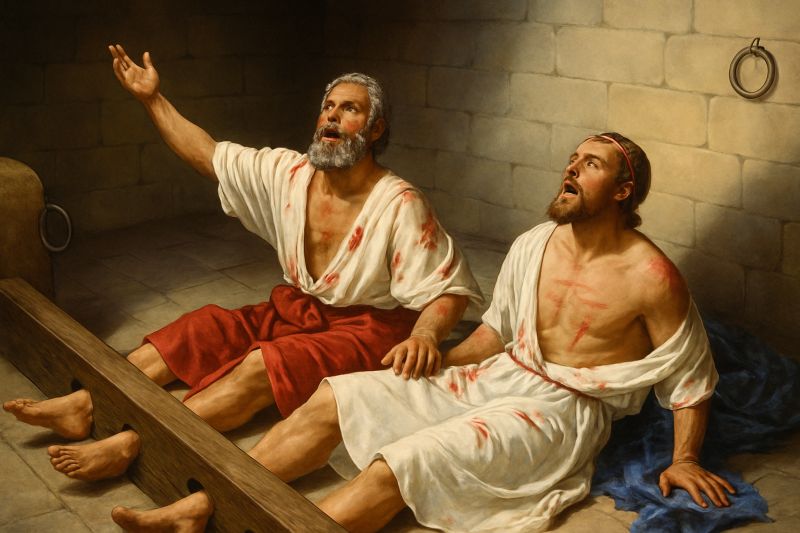 接着,敬拜的群体在宝座前齐声唱新歌:“你配拿书卷,配揭开七印!”这是敬拜达到高峰的时刻,全地都向祂发出赞美。 弟兄姊妹,这告诉我们:每一次的敬拜,其实都是在回应天上那个问题——“谁配得?” 每一次当我们唱“你配得”,就是在向世界宣告:掌管万有的,不是撒但;决定历史结局的,不是地上的强权;而是那位因十字架得胜的基督! 因此,敬拜不仅是情感的抒发,更是信心的宣告。 每一次我们唱诗、祷告、举目仰望主,其实都是在提醒自己的心:“不要惧怕!历史在羔羊手中,神的宝座从未动摇!” 这让我想起使徒行传16章保罗和西拉的见证。他们在腓立比传福音,被人打、被下在监里,两脚上了木狗。按人的眼光,他们是失败者、是受害的苦主。然而圣经记载说:“约在半夜,保罗和西拉祷告,唱诗赞美神。”(徒16:25)