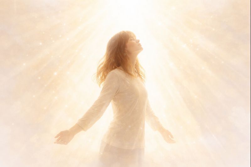 我好高兴。同时似乎有足够把我包围的大桶那么粗的一道洁白明亮的光从天而降穿透了我。我至今也不知道是不是我眼睛看见的,但是我真切地感受到了这束光,以至于我每次和人分享我的得救经历的时候,总是不忘记提到这件事。自那刻起,说不出来的喜乐和满足充满了我,我突然觉得一切都不那么重要了,因为我竟然拥有了世界上最宝贵的救恩。
