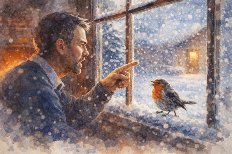 “篤篤篤”的聲音從窗戶那邊傳來,他抬起頭來,看見一隻羽毛斑斕的小鳥在用自己紅色的喙,敲打着透明的玻璃窗。大雪導致極度降溫,顯然小鳥已經凍得瑟瑟發抖,它不停地用喙叩擊着玻璃窗,不斷地張開翅膀,顯然是要飛進房間的意思。