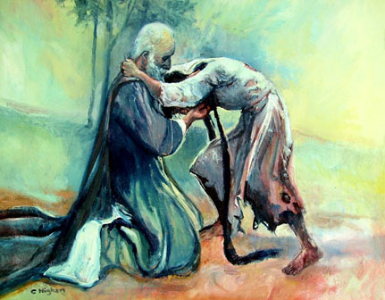 二 儿子:还是我的房间。被褥洗得干干净净,有洗涤剂的飘香。这里与纷扰的世界隔离了,没有喧闹。这里安静,这里是家。 父亲:哪怕你走到世界的尽头,这里,还是你的家。你随时回来,家门都对你敞开。你在外边,累了,倦了,你回来,就可以在这里得安息。这是你的家。 这个家,毕竟是你地上的家。孩子,你还要回归天上的家。父亲已经年纪老迈,毕竟不能陪你终生。这个家终究会败落、消失,它毕竟是暂时的栖身之处。孩子,你需要找到那永恒的家园,更美的家园。 三 儿子:我尊重您的信仰。只是,谁能证明上帝存在?让我相信一个看不见的上帝?怎么能! 父亲:看不见,就等于不存在、不可信?思想一下你的逻辑对不对。你看不见的东西多了,但你怎么就相信它们的存在呢?你看得见电吗?你看得见磁场吗?你看得见射线吗?你并没有看见啊,你怎么就相信它们的存在呢? 儿子:那是科学啊,眼睛看不见,但是有仪器可以测出来的。很简单的道理啊。 父亲:同样是很简单的道理:上帝是个灵,眼睛看不见,但是心灵的眼睛是可以看见的!你看宇宙如此奇妙,那就是上帝的创造啊。 儿子:谁创造了上帝? 父亲:上帝是自有永有的,是创造者,不是被造物。 儿子:太不合科学了,太武断了。 父亲:那你说宇宙是怎么来的? 儿子:自然而来的。 父亲:自然是从何而来? 儿子:自然就是自然,自然就是自然而有的。 父亲:你这样说是“合科学”吗?是不武断吗? 儿子:……(无语) 四 父亲:你听过耶稣的故事。如果说你看不见神,上帝的儿子耶稣道成肉身,来到世界,已经把神的爱向我们表明出来了。耶稣曾经来过这个世界,是一个历史事实(连圣经之外的历史书都有记录)。祂为了救赎我们脱离罪、脱离死,在十字架上替我们被钉死,第三天复活,升天。信祂的人,认罪悔改的人,都会得救。不信的人,罪已经定了。 儿子:老爸,我是多少遍听见你讲耶稣了?每一次,我都会有感动!耶稣真的伟大。只是,有一个问题,我总是想不通。信耶稣进天堂,不信耶稣下地狱?因为不信祂,就要下地狱?这未免太专断了。 父亲:孩子,先明白一点:不信耶稣的人,本来就是在与神隔绝的状态之中。自从人类始祖亚当夏娃违背上帝的命令,吃了禁果(动机是不满足自己的被造地位,要与神一样同等),人类就失去了乐园,就与上帝隔绝了。罪把人与上帝隔开了:虽然人的肉体还在短暂的存活,但人的灵已经死了。罪因一人进了世界,人人都犯了罪,罪导致死,死后且有审判。人因着罪已经与上帝隔绝:你看多少人,活得多么苦,现在就像是活在地狱之中。——所有的人,因着罪,是已经处在地狱一般的境况之中了,并且在将来死后一定是进地狱的(因为死后且有审判,我们因带着罪,必定达不到上帝圣洁的标准)。 而上帝的恩典就是要把我们这些原本要下地狱的人,救拔出来:信耶稣、罪被涂抹,我们披戴耶稣的义袍,被称为义人,得以与上帝和好,脱离了地狱的刑罚,进入永恒的天家——这不是白白的恩典吗?可能换一种说法更好理解:信耶稣,脱离地狱进天堂;不信耶稣,继续留在地狱中吧。 儿子:那没有听过福音的人呢?他们都要下地狱?这未免太霸道,太不公平了。 父亲:耶稣说:我就是道路,真理,生命。若不借着我,没有人能到父那里去。(约翰福音14:6)除祂以外,别无拯救。因为在天下人间,没有赐下别的名,我们可以靠着得救。(使徒行传 4:12)圣经这样说,我们就这样信。你想一下:到底是你的标准更合理?还是上帝的标准更合理?你比上帝更公义吗?你比上帝更有爱心吗?耶稣在我们还是罪人的时候,就在十字架上为我们舍己,我们钉死祂,祂还在为我们祷告求神赦免我们——这样的大爱,你有吗?人间有吗?这样的神,祂的公义、祂的慈爱,你还敢质疑吗? 儿子:……是的,在耶稣的十字架前,我无话可说。 父亲:孩子,在上帝面前谦卑下来吧。你的聪明,你的智慧,都是上帝赐给你的。用你的聪明和理性,追求认识祂吧。 耶稣说:在我父的家里,有许多住处。若是没有,我就早已告诉你们了。我去原是为你们预备地方去。我若去为你们预备了地方,就必再来接你们到我那里去,我在哪里,叫你们也在哪里。(约翰福音14:2-3) 孩子,就像我清理打扫了你的房间一样,耶稣也为你预备了地方;我为你预备的,是暂时的歇息之地,耶稣为你预备的,是永恒的家园。就像我盼望你回家一样,天父也在盼望你回转、归向祂。祂对你的爱,超过我对你的爱多少倍……父亲老了,也已准备好,等主接我回天家,安息主怀好得无比。每一天我都在记挂着你,每一天我都在为你祷告。我会离开你,但只要你回转、信耶稣,主的爱总不会离弃你! 儿子:父亲!你往哪里去,我也往哪里去!你的神就是我的神! 父亲:孩子,感谢主!我们在天上的父神啊,感谢你带领这个孩子回家!求你赦免他一切的罪,涂抹他一切的过犯!求你带领他前面的道路,使他的生命荣耀你的名!感谢你的恩典和怜悯,拣选救拔我和我家这一代又一代的人!主啊,愿你的名大得荣耀!祷告奉耶稣的名,阿们! 儿子:阿们!