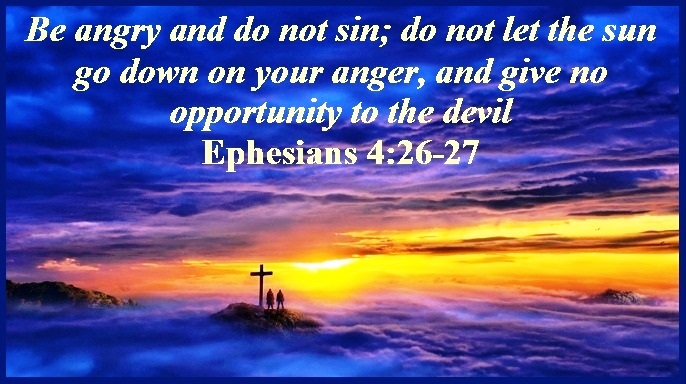 “生气却不要犯罪。不可含怒到日落,也不可给魔鬼留地步。”(弗4:26-27)