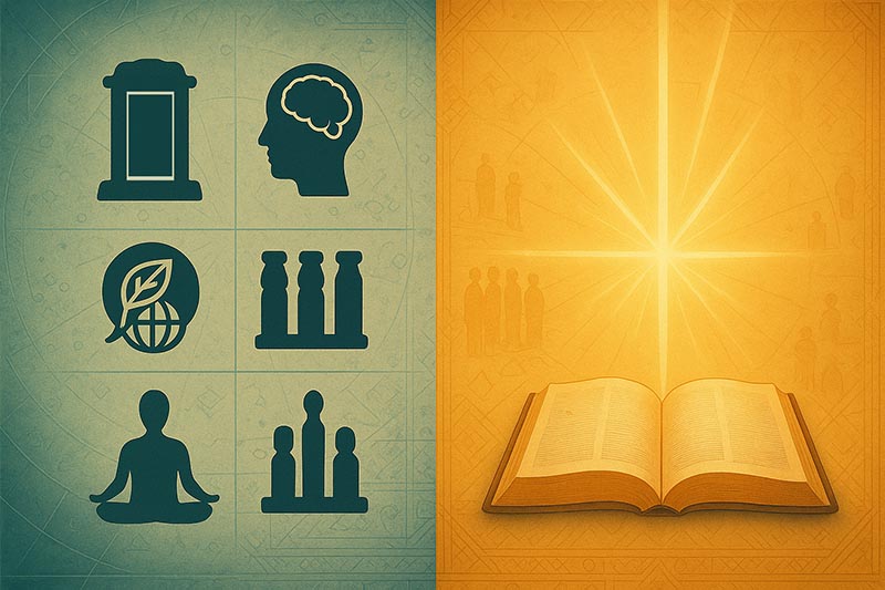 E.新纪元运动(New Age Movement):人就是神。他们相信每一个人都是神,而不相信宇宙中有一个创造宇宙万物、拯救人类的神是宇宙的主宰。他们相信人有无限的潜能,我们平日只用出了百分之五至十五,是我们潜能中极小的一部份,就是因为我们未将潜能发挥得淋漓尽致,所以现在如此景况。若能全数发挥,则我们可以变成神。因此他们特别喜欢向那些较有名望权势的人宣传他们的教义。归根究底,他们乃叫人摒弃神,相信自己。人相信自己可以胜过一切。