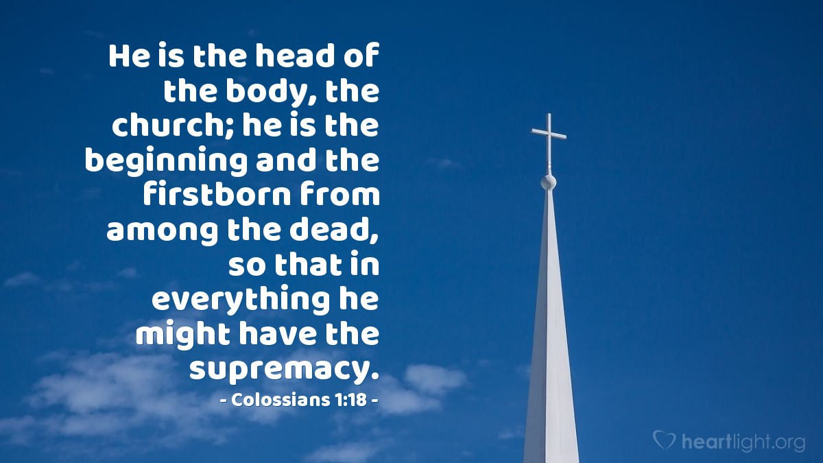 主耶稣是教会的头:“基督是教 会的头 。祂又是教会全体的救主。” (弗5:23)遗憾的是,今天有的教会,并不是真的让基督作头,作唯一的头!人为的传统、政治的势力、世俗的影响等等常常在左右着教会。若真的让耶稣作头,教会就要以祂亘古不变的话语--圣经--作为信仰、行动的唯一指南。若真的让耶稣作头,教会也要准备好甘心与主一同受苦。让我们“在爱里讲真理(和合本作“ 用爱心说诚实话”),凡事长进,连于元首基督 。” (弗4: 15)