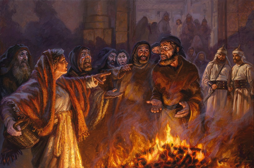 “彼得三次不认主”paiting by Jan van’t Hoff, Artwork copyright © www.gospelimages.com; 本刊蒙允使用,特此致谢 我们看到,勇敢、刚强、对主忠诚的彼得,转眼之间就跌倒了,而且跌倒得厉害——为了切断自己与拿撒勒人耶稣的关系,他竟然发咒起誓说,“我不认得那个人!”看到这里,我们会问:说“我就是必须和你同死,也总不能不认你”的彼得,和“发咒起誓说我不认得那个人”的彼得,是同一个人吗?是的,是同一个人。正因为是同一个人,前后的冲突与反差才显得如此之大,以至于我们必须进一步问:这是为什么呢? 因为彼得的目光一直在自己身上,而不是在那位钉十字架的耶稣基督身上。彼得的夸口是自然的(出于血气),而他的失败则是必然的。根据马太福音的记载,当听到耶稣的呼召时,他的确立刻跟从了主(太4:20);他甚至从父神领受启示,宣告耶稣“是基督,是永生神的儿子”(太16:16),并因此蒙主的夸奖(“西门巴约拿,你是有福的”,太16:17)。但是当主耶稣对门徒启示祂的十字架,告诉他们祂必须上耶路撒冷去,必须受苦,必须被杀,第三日必须复活时(太16:21),彼得就开始拦阻耶稣基督的十字架(并因此受到主的责备:“撒但,退到我后面去吧!你是绊我脚的”,太16:23)。彼得希望他所跟随的耶稣,是一位能够恢复大卫帝国辉煌的政治弥赛亚,而不是一位被钉十字架的救主。但神救恩计划是任何人都不能改变的。于是就有了“我要击打牧人,羊就分散了”的夜晚……