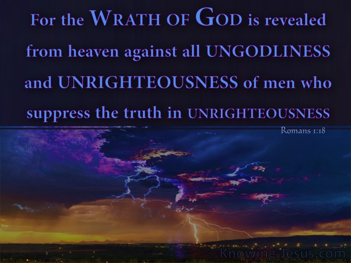 神的忿怒既然以“一切不虔不义的人,就是行不义阻挡真理的人”为对象,这个“一切”实际上就把所有的人都圈进来了: 在摩西的律法之下犯罪的犹太人,在摩西律法之外犯罪的外邦人,自以为义的道德主义者(包括那些把“道德高尚”的标签贴在古往今来的文化人物如孔子、老子、甘地、雷锋等身上的人)……总之一句话,整个人类都在上帝的忿怒之下,因为“没有义人,连一个都没有”“世人都犯了罪,亏缺了神的荣耀”(罗3:10,23)。照着神的创造,照着人的宗教天性和悟性,人是“知道”神的,但他们却不把神当作神来荣耀,也不感谢祂(单单因为阳光和空气,人就该对上帝感恩不尽啊!),“他们的思念变为虚妄,无知的心就昏暗了。自称为聪明,反成了愚拙;将不能朽坏之神的荣耀变为偶像,仿佛必朽坏的人和飞禽、走兽、昆虫的样式” (罗1:21-23)。他们既然如此抵挡真理,就自然成了神忿怒的承受者。
