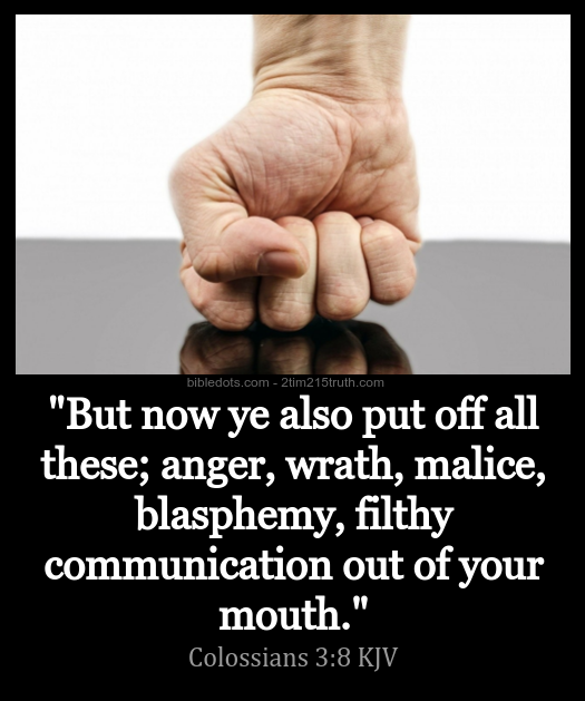 5所以要治死你们在地上的肢体,就如淫乱,污秽,邪情,恶欲,和贪婪,贪婪就与拜偶像一样。6因这些事,神的忿怒必临到那悖逆之子。7当你们在这些事中活着的时候,也曾这样行过。8但现在你们要弃绝这一切的事,以及恼恨,忿怒,恶毒,〔或作阴毒〕毁谤,并口中污秽的言语。
