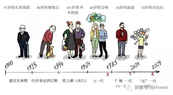 影响因素 同代人的价值观会有某些共性,并受以下4个因素的影响: 一.大事件。例如举办奥运会、载人航天飞行成功、2001年9月11日的恐怖袭击事件等。这些全球性的大事件,会影响到每一个人,尤其是孩子们。街头巷尾、整个城市、整个国家,乃至全世界都在谈论的这些大事件会对当时正在成长的那代人产生最为鲜明的影响。 二.周围环境。我们生活的大环境和小环境,都在无形之中为每一代人贴了标签,例如,我们经常听到的:“投票和选举的一代”“喝百事可乐的一代”“贷款和还利息的一代”“很有家庭观念的一代”。 三.教育。不同代人的家庭对教育各有其侧重点,他们喜欢使用不同的关键词,例如,以前孩子们总是被教导要“勇敢”,但现在孩子们被教导要“维护自己的权益”“成为领导者”。 四.经济实力。例如,经济实力会影响人际沟通:在苏联财政赤字时期,书籍匮乏,所以那代人彼此间沟通得更多。而如今人们生活在高科技时代,却缺少了交流。 这些因素使不同代的人之间产生了明显差异,也有了代际冲突。因此,我们要对其进行分析,找到一个折中的沟通办法,让彼此之间更加包容和理解。我们以当今生活在俄罗斯的三代人为例进行分析。 首先,让我们认识一下10岁的丹尼尔,他是目前正在成长中的新一代人。为了方便分析,我们为各代人的代表设定他们所代表人群的平均年龄。丹尼尔的叔叔30岁,父母40岁,爷爷奶奶60岁,曾祖父80岁,还有丹尼尔的长寿邻居97岁。 需要注意的是,出生在几代人边界上下3年的人,就是我们所说的代际过渡人群,他们身上可能同时具有两代人的特点。 当今最为活跃的3 代人分别是:丹尼尔这代人(Z),丹尼尔的叔叔这代人(Y),丹尼尔的父母这代人(X)。为了避免混淆,我们用字母代替他们的称谓。 X一代(1964-1984年)——目前人数最多的一代人。他们是杰出的“心理学家”,适应能力强,能和不同人找到共同语言,是几代人中最独立的一代。他们从小就学会了照顾自己:因为父母总是在工作。X 这代人(丹尼尔的父母)童年时有大量自由时间在院子里和户外玩耍,而且几乎所有人从小就能独立做饭、穿衣、做作业。 他们具有很强的责任心,和其他几代人比起来甚至显得责任心过重。他们不喜欢他人言过其词的赞扬,也不喜欢表达对他人的赞赏。成功对他们来说就是拥有稳定的工作、汽车、住房和美满的家庭。 Y一代(1985-2003 年)——社交的一代。通常,他们一人就拥有几部智能手机,并且会花很多时间在社交网络上。Y一代(丹尼尔的叔叔)非常了解自己的需求,例如,在购物时他们对产品性能和价格都有一定了解,他们喜欢咨询并采纳广告的建议。顺便说一句,这代人开始喜欢通过互联网购物。 此外,他们不急于马上开始独立生活和组建家庭。他们习惯的生活方式——租房,通常是合租,他们可以接受公共住宅这种新居住模式。他们不想像自己的父母一样一辈子都只专注于解决职业问题,喜欢将工作和生活平衡,将学习、工作与体育锻炼、音乐和其他爱好相结合——对他们来说,最重要的生活目标是找到真我、获得心理舒适感。这点也体现在他们对工作的态度上。一份光鲜的工作和高职位已不再是他们的最终奋斗目标。但由于社交网络越来越发达,他们也会不断地将自己与他人进行比较,从而经常质疑自己的人生。 Z一代(2004-2024年)被称为“宅在家里的一代人”。这代人在父母的密切呵护下长大,几乎从不单独出门,因此也被称为“备受呵护的一代人”——在幼儿园、学校和家庭中都备受关注。但也正因如此,这一代人总是感到一种适得其反的不安全感。 Z代人只有在他们年满18 岁时才能确定基本的价值观,他们比Y 代人更加不注重物质,更强调丰富精神世界。他们会按照自己的心意找工作,而不受客观条件的限制。这代人喜欢简单明了的幸福:创建一个家庭,得到一份喜欢的工作,爱父母,夫妻关系和谐……他们喜欢照顾人,对自己未来的家庭和孩子充满美好希冀。在这代人中,让自己变得更聪明逐渐成为一种时尚——他们广泛阅读、学习几种语言、在不同的领域发展自己,上学时也会上课认真听讲。 X、Y和Z这3代人对个人信息、金钱、社交网络、家庭、工作、成功等方面的态度有何种差别?