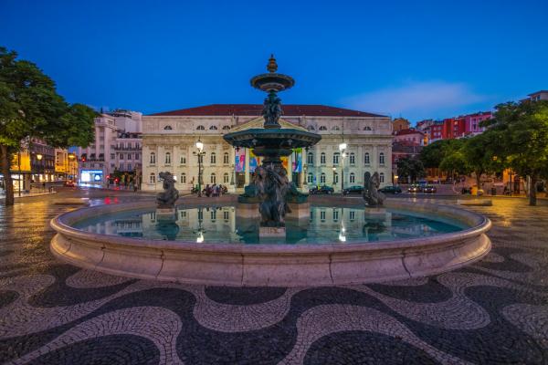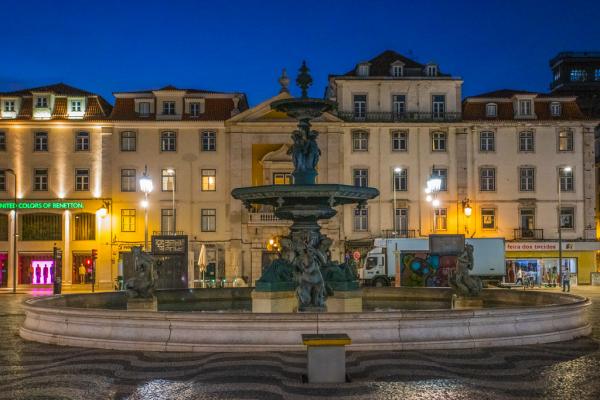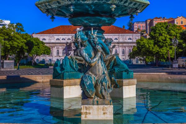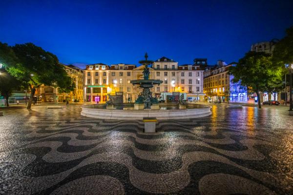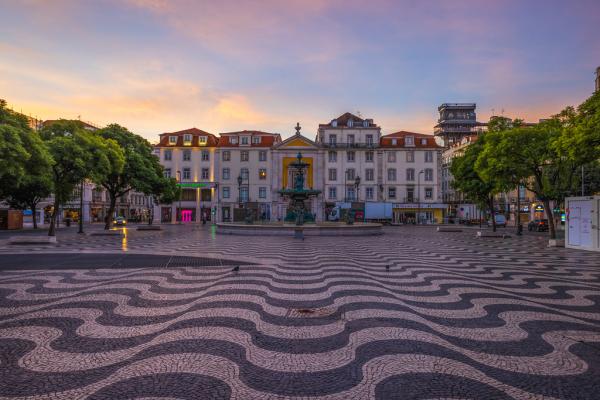 里斯本多姆佩德罗四世广场,在里斯本的广场上冲浪