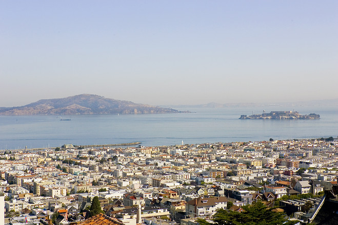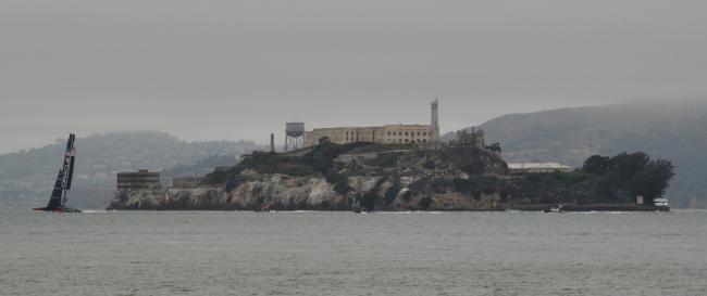 在旧金山渔人码头上您能清楚地看见恶魔岛。