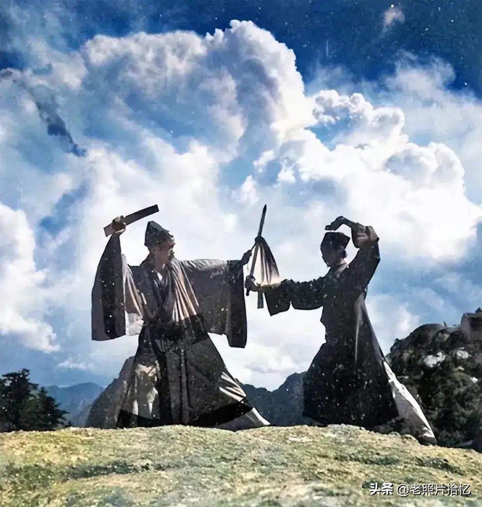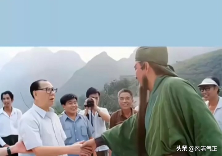 1990年,在《三国演义》片场上,杨成武将军与扮演关云长的陆树铭