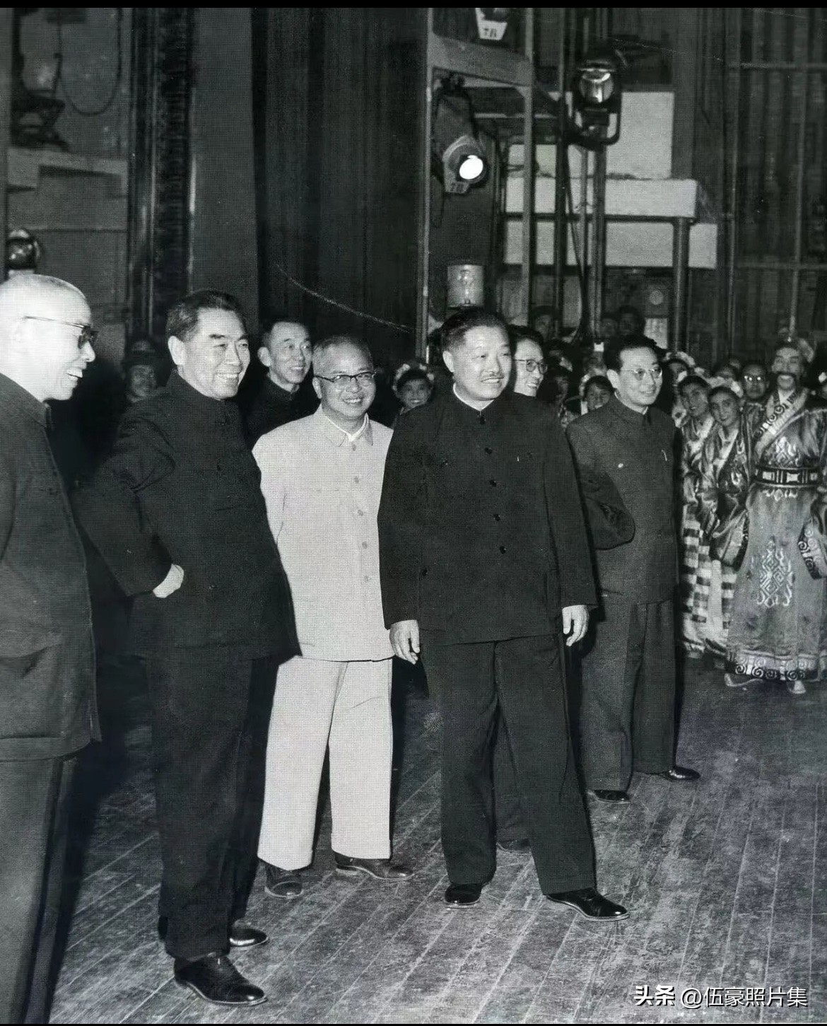 1960年3月8日,周恩来、贺龙在北京接见话剧《文成公主》剧组演员。一同参加接见的还有田汉、吴晗、齐燕铭等