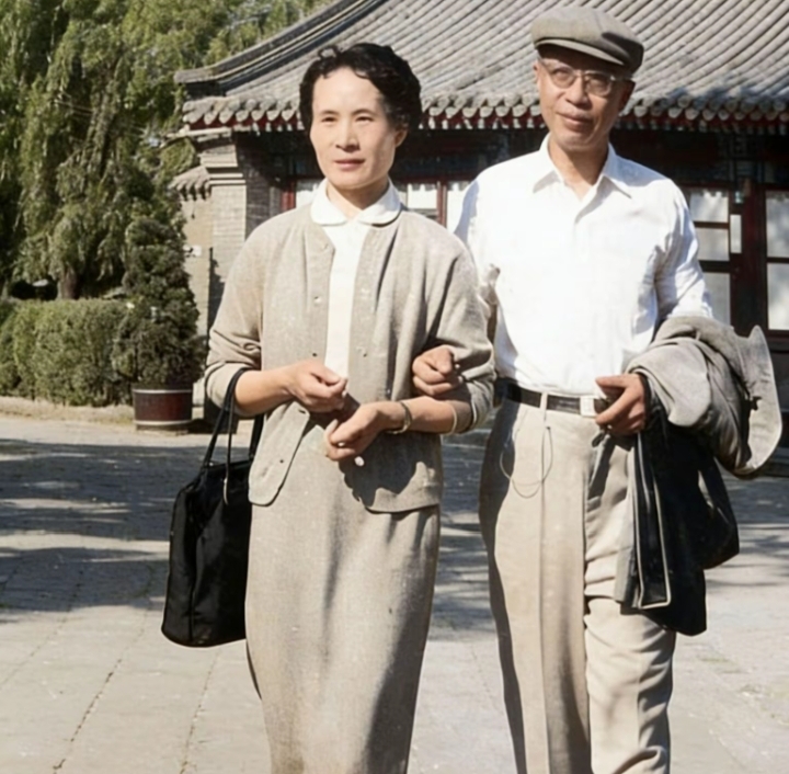 60年代,"末代皇帝"溥仪与妻子李淑贤在北海公园散步