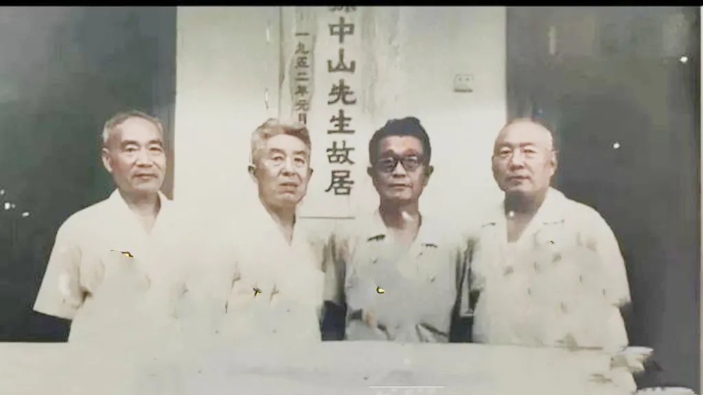 1977年,侯镜如、郑洞国、杜聿明、宋希濂伫立于孙中山先生故居前