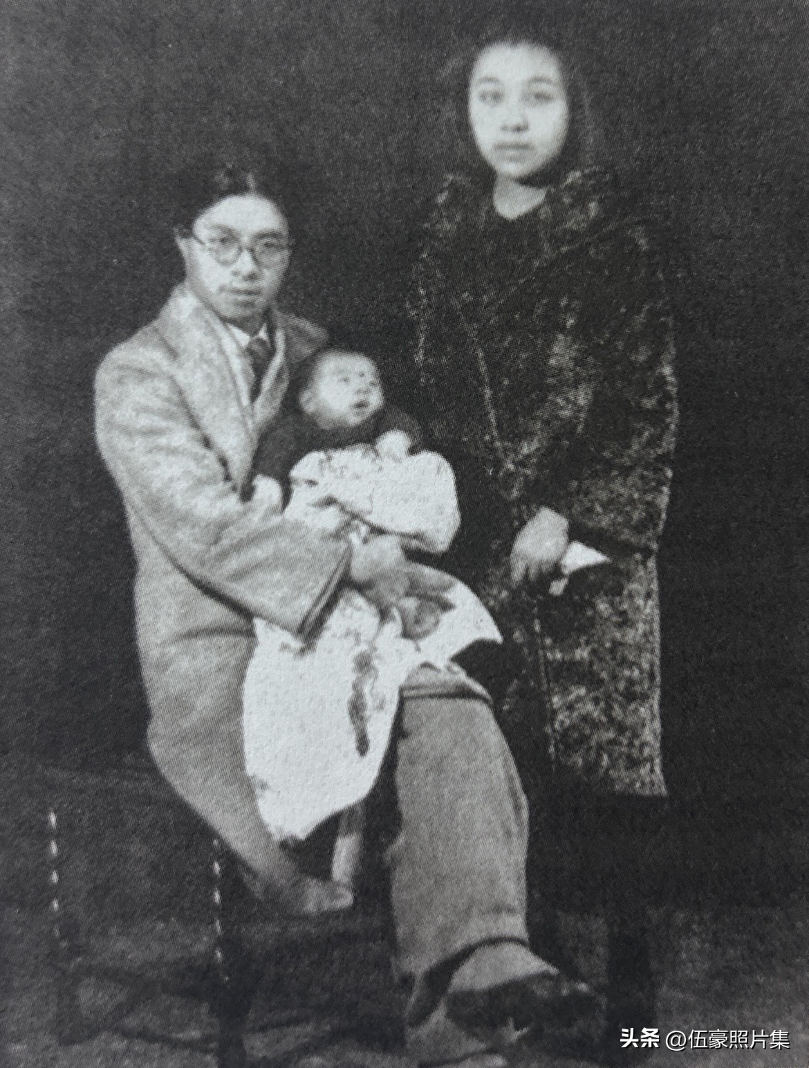 1930年12月,在上海万宜坊的弄堂口,胡也频、丁玲夫妇与他们出生仅一个多月的儿子拍下了一张全家福