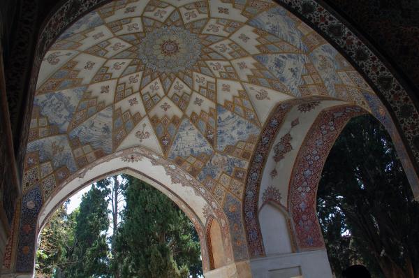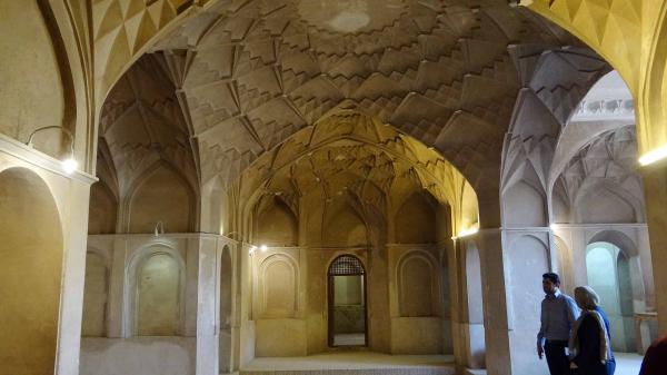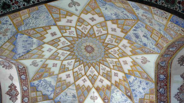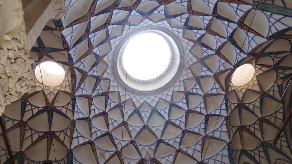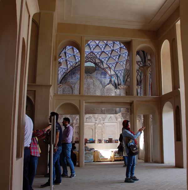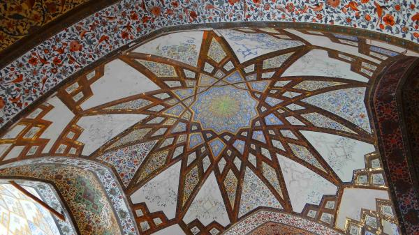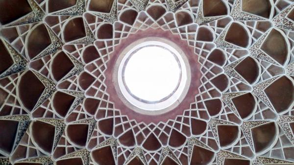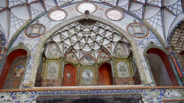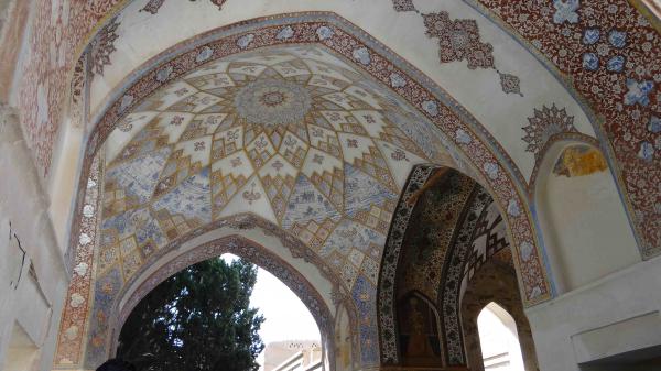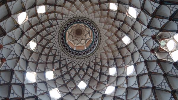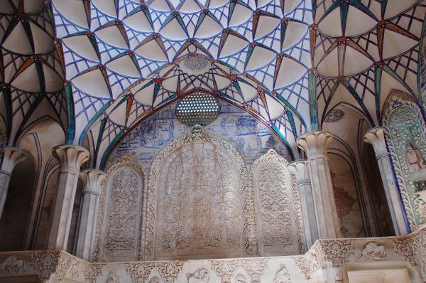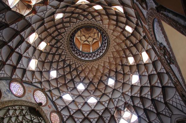 卡尚距德黑兰约 240 公里,距伊斯法罕 约 210 公里。如果说伊斯法罕是波斯文明的“王冠”,那么卡尚就是王冠上闪亮的一颗宝石。卡尚是伊朗中部一座极具历史厚度与审美气质的古城,位于伊斯法罕省北部,地处伊朗高原与卡维尔盐漠边缘,是连接德黑兰—伊斯法罕古商道上的重要节点。是波斯文明的古老舞台。卡尚附近的锡亚尔克山丘可追溯至公元前六千年,是伊朗最重要的史前遗址之一。卡尚在塞尔柱、萨法维、卡扎尔等王朝中,长期以手工业、商业和园林文化闻名。19 世纪(卡扎尔王朝)达到城市美学高峰,留下大量精致民居。建筑多为土黄色调,与沙漠环境融为一体。城市生活围绕庭院展开,外表朴素,内部极尽华美。卡尚的手工地毯:图案典雅、配色克制,是波斯地毯体系中的重要一支。中世纪卡尚曾是伊朗最重要的制陶中心之一。