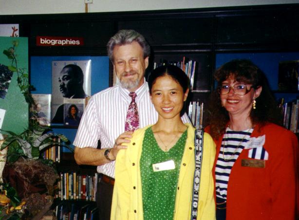 也许美国人的独立精神就是这样从摇篮里开始培养出来的。 我,伍德先生和图书馆的某部门负责人在克里夫兰图书馆内(93年5月)