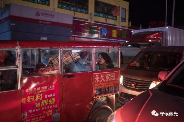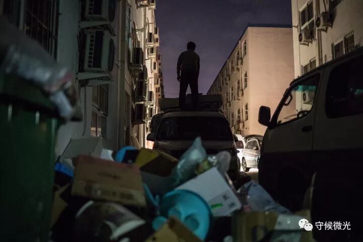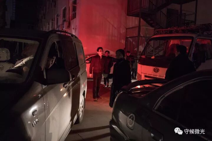 11月24日晚,通州区马驹桥镇周营村诚信家园二部,搬家的住户站在车顶。