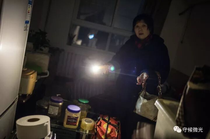 11月24日晚,通州区马驹桥镇周营村创客公寓,张女士(中)下班后帮住在公寓的父母搬家。张女士的母亲今年72岁,老人描述说三天前公寓突然断电、断水、断暖。