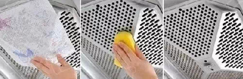 ▌洗洁精的量不要过少,且油烟机盒的四周一定要涂满洗洁精,这样在清理时会更容易清理油污。