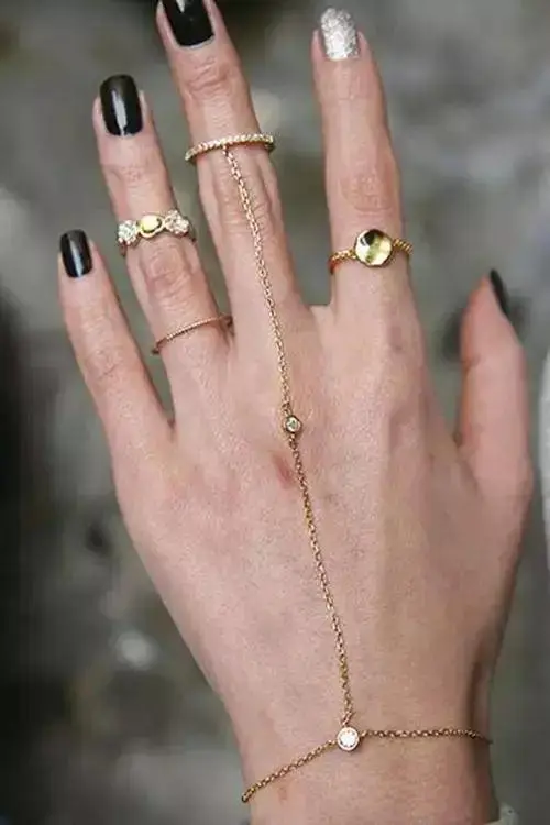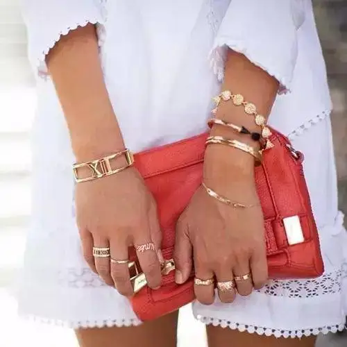 / 宝姐私语 / ?附赠最新潮流的戒指戴法。 1)设计风格相似的戒指可以叠戴,配合手镯效果更棒!