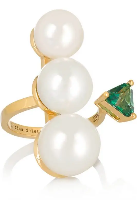 (DELFINA DELETTREZ的18K金、珍珠和托帕石戒指)